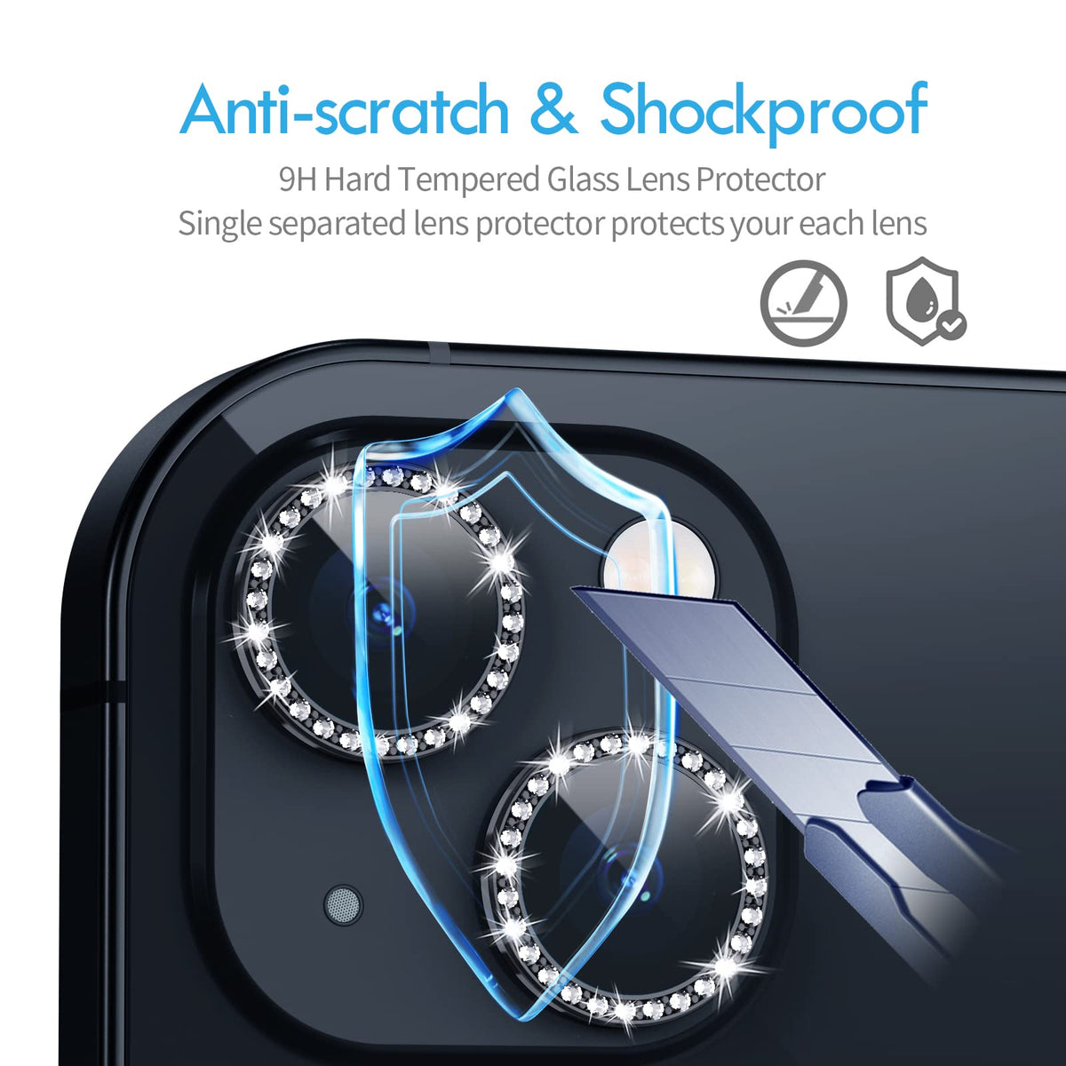 Xfilm Bling Diamond Individual Camera Lens Protector For Iphone 13 / Iphone 13 Mini, Hd Clear Tempered Glass Camera Lens Screen