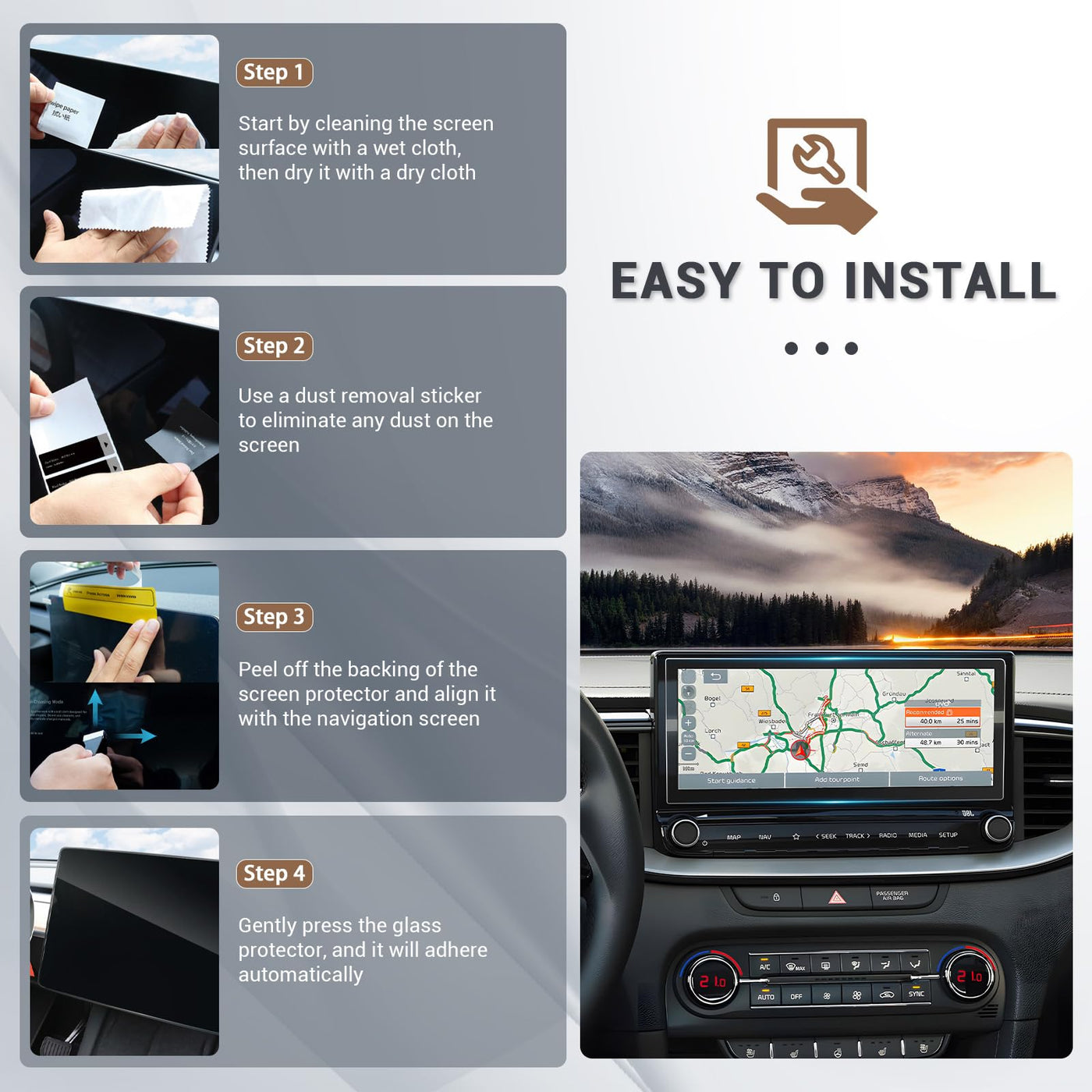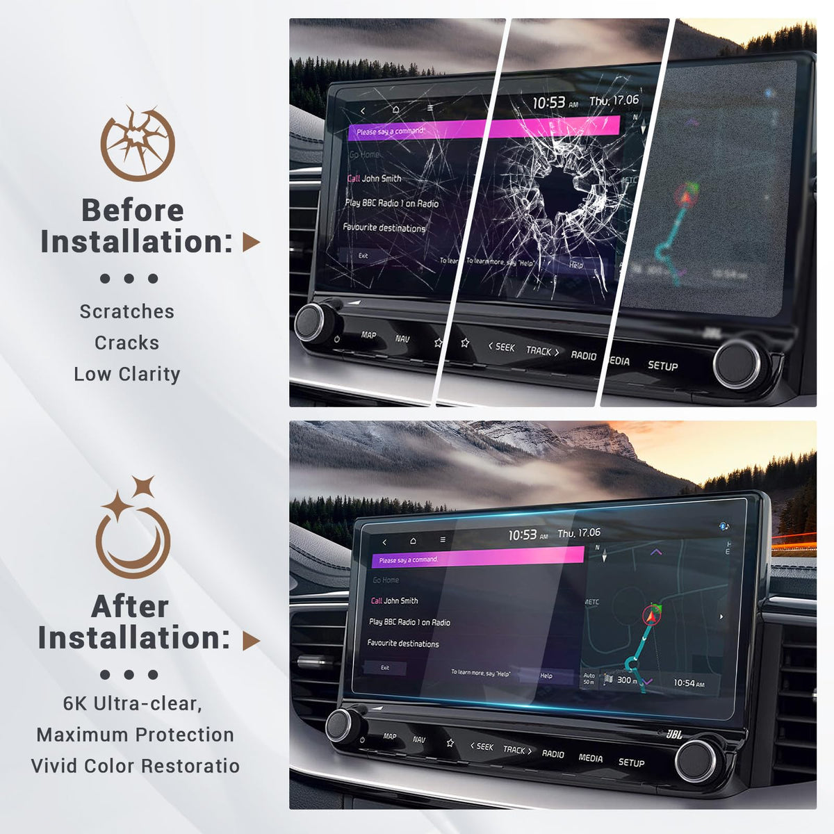 Features: 1. ?Custom-Fit Design?-Specially Designed For The 2022 2023 2024 Kia Forte 10.25-Inch Touchscreen; 2. ?Ease Of Installation?-Includes A Installation Kit For Effortless Application; 3. ?Excellent Quality?-Tempered Glass Durability Rated At 9H Hardness; 4. ?Touch Sensitivity?-Touch-Responsiveness Guarantee Hassle-Free Access And No Delay; 5. ?High Clarity?-Extreme Clarity Preserves The Original Screen Brightness; 6. ?Fingerprint Resistance?-Oleophobic Coating For Daily Fingerprint Resistance; 7. ?Crystal Clear?-With 99.9% Transparency Preserves The Original Viewing Quality.