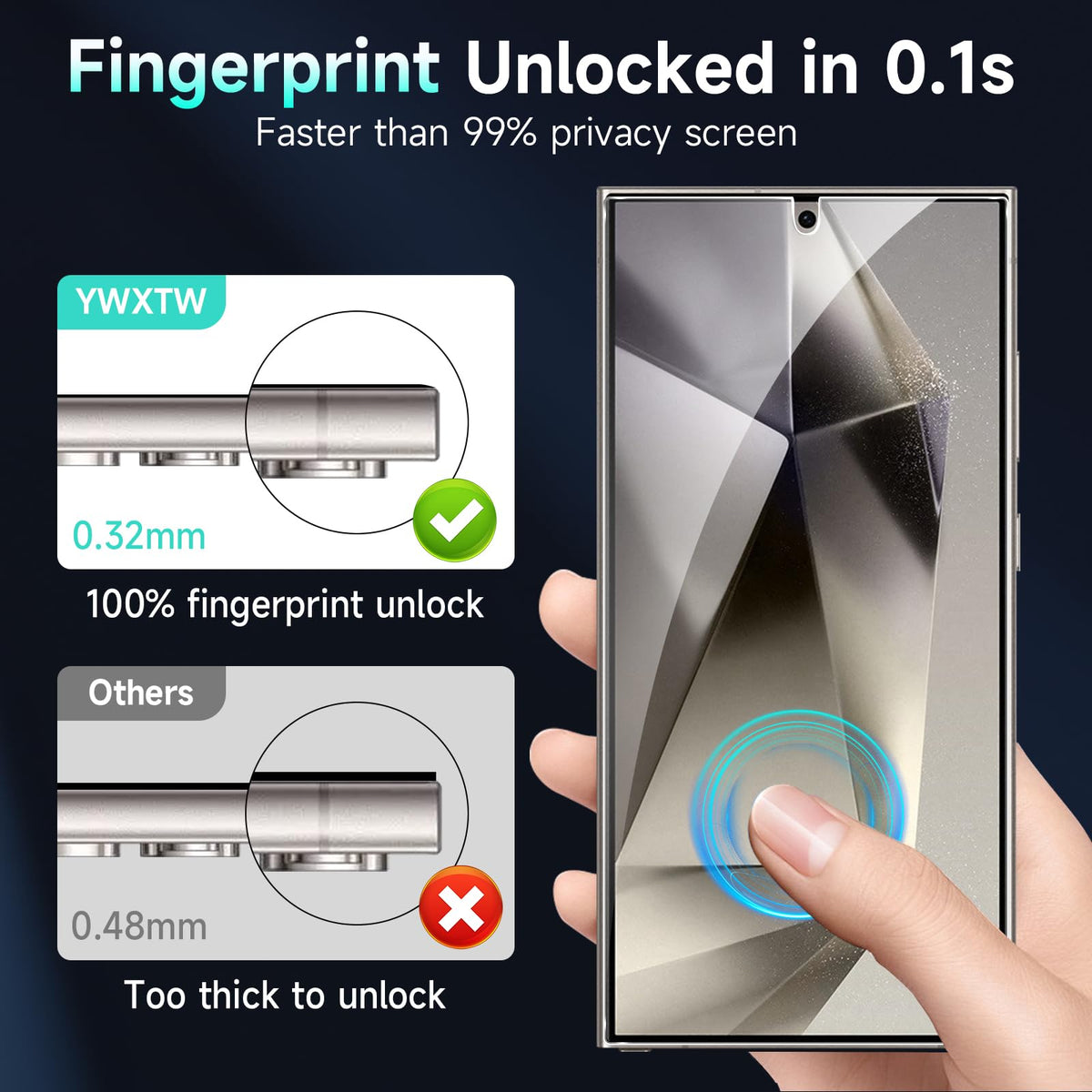 Ywxtw Ez Unlock For Samsung Galaxy S24 Ultra Privacy Screen Protector, [0.1S Ultrasonic Fingerprint Support] [Not Glass] 25 Anti