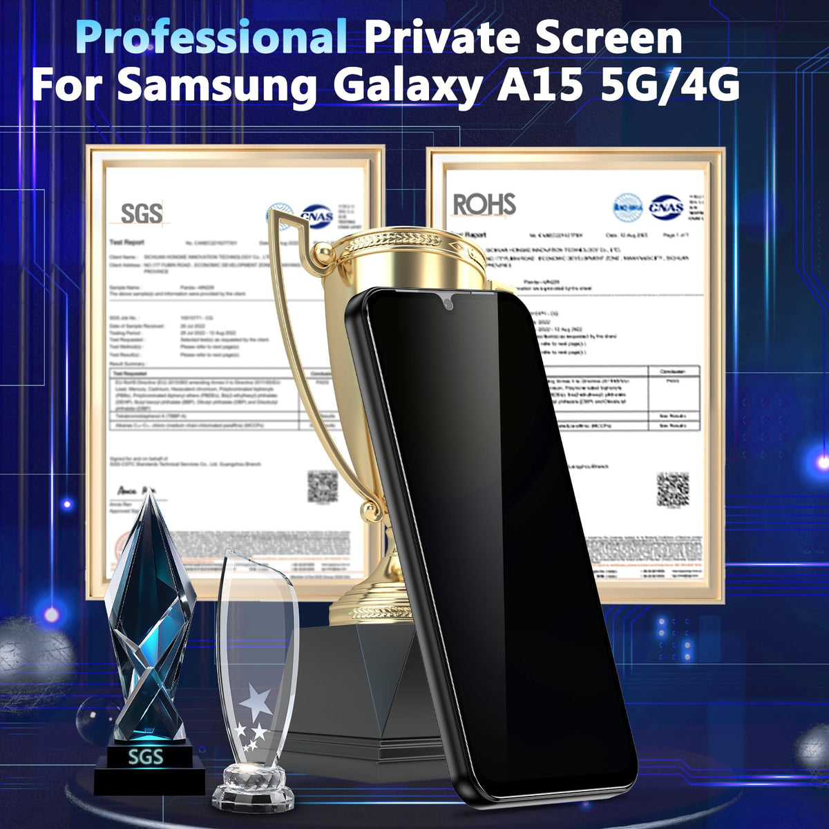 Q: What level of protection does the tempered glass provide?A: The YWXTW Privacy Screen Protector is made of 9H hardness tempered glass, which effectively protects your Samsung Galaxy A15 screen from scratches, cracks, and other damage caused by daily use.