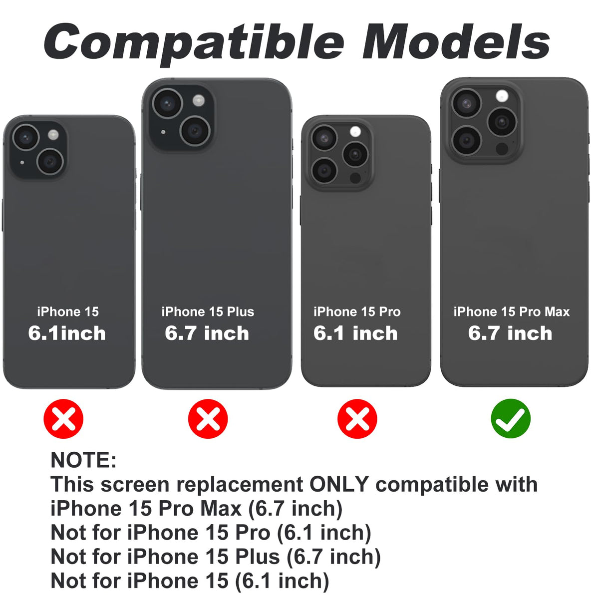 Digi4U Lcd For Iphone 15 Pro Max Screen Replacement, 6.7[3D Touch][Small Notch] Screen For Iphone 15 Pro Max Display Digitizer Assembly, With Repair Tools For Iphone 15 Pro Max Lcd