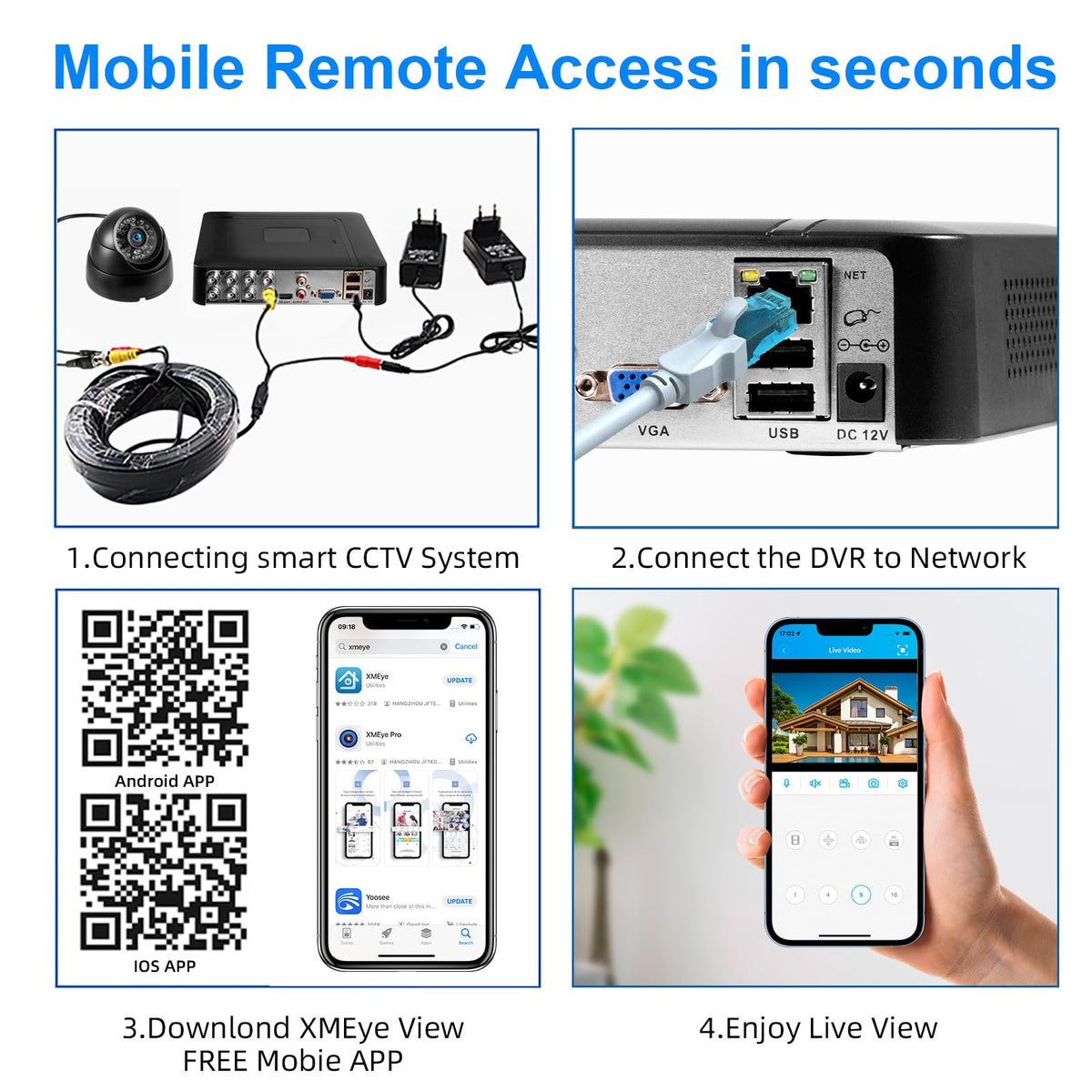 Feature: V Support H.265+(Quasi H.265) Encoding, Ultra-Low Bitrates, Compatible With H.265 Surroundings; V Support Vga, Hdmi Full Hd Output Simultaneously; V Support Onvif; Access Third Party; V Support Web, Cms, Center Platform Management Software;Myeye, Provide Sdk Development; V Upport Various Mobile Monitoring (Iphone, Android);Remote Access, With Dns (Arsp),Easy To Monitor Remotely V Support Utc, Control Signal& Video Stream Transmit Through One Single Coaxial V Support Ahd/Tvi/Cvi/Cvbs/Ip Five Signals; V Support Xvi,Image Quality Is Better.Support Multi Languages. Data Encryption, Cyber Security . All Devices Passed The Severe Testing Of Ul, Ensuring The Whole System Is Extremely Safe To Use. The Solid Housing Ensures Long Lifespan For All-Season Monitoring.Besides, All The Data Is Dynamically Encrypted And Safe. With Or Without The Internet This Nvr Can Be Used Without Being Connected To The Internet For Local Recording And Live Viewing. However, An Internet Connection Is Required To Enable Remote Viewing, Motion Push Notifications. Smart Motion Detection Alerts Alarm Information Pushed To Your Phone. Receive Instant App Pushes And Email Alerts With Snapshots Upon There Are Motion Events. Get Alerted Only When It Matters Without Staring At The App All The Time.Motion Events Are Specially Identified Thus You Can Find The Video You Want Easily. Remote Access With Free Xmeye App & Client . With Free Xmeye App And Client, You Can Access The Dvr For Remote Live Stream & Playback Via Your Smartphone, Tablet Or Computer Wherever. Easiest Plug & Play In Seconds . Link The Cctv Surveillance Cameras To The Dvr With Bnc Cables And Then Power On The Whole System To Start Instant 24/7 Recording, Perfect For Diy Lovers. .Connect The Dvr To A Tv Or Monitor With The Hdmi Or Vga Output To Get Local Live Stream Without Limitation.