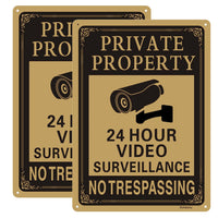2 Pack Large Private Property No Trespassing Sign 24 Hours Video Surveillance Warning Sign | 14'' X 10'' Rust Free Aluminum Ea