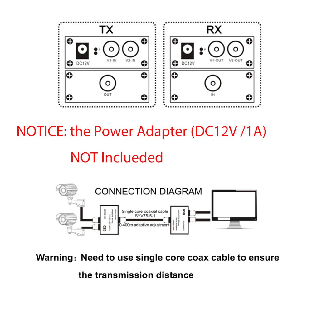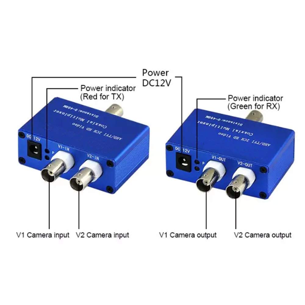 2Ch Ahd Tvi Cvi 1080P Hd Video Multiplexer 2 Channel Video Coaxial Multiplexer For Hikvision Hdcvi 1080P 2Mp Cctv Camera2 Cameras By 1 Cable For Cctv Security Systemkey Features:1. Its Designed According To Projects With Minimum Installation Volume Requirement.2. 2-Ch Video In One Coaxial Cable Transmission.3. Fdm Technology Is Easy For Multi-Channel Signals Transmission Only In One Coaxial Cable Without Any Delay And&Nbsp;Interference.4. Perfect Support Coaxial Video Line, 75-3, 75-5, Rg59 Wire, Etc.Ahd (Made By Xm): Perfect Quality Effect, Support 720P, 960P, 1080Pcvi (Made By Dahua): Perfect Quality Effect, Support 720P, 960P, 1080Ptvi (Made By Hikvision): Support 720P, 960P, 1080P, 3Mpintroduction:This Product Uses Special Compression Modulation Technology, On The Front End (Transmitter) Let 2-Channel Cvi/Ahd/Tvi Hd&Nbsp;Camera To Compressed, Then Made Into Digital Signal In Coaxial Cable Transmission. The Back-End (Receiver) Through&Nbsp;Modulation, Reductive Into 2-Channel Hd Signals For Hd Dvr (Cvi/Tvi/Ahd) Or Matrix Use After Decompression. This Series Of&Nbsp;Products Can Be In Adaptive Adjust Transmission Distance Within 0-400 M.It Supports 2 Channel Video Signals In One Coaxial Cable By Way Of Frequency Division Multiplexing, With All Data&Nbsp;Transmission Real-Time And All Images High-Definition And Non-Delay. It Is Suitable For Improvement Ofold Projects And Building Under New Projects.Installation:1.Plug The Line Cord To An Outlet With Grounding.2.Connect Input Video Cable To The Input Bncs3.Connect Output Video Cable To The Output Bncs4.Turn The Power Switch To The On Positionenvironmental:Operating Temperature: -10?-+45?Humidity:90%&Nbsp;P