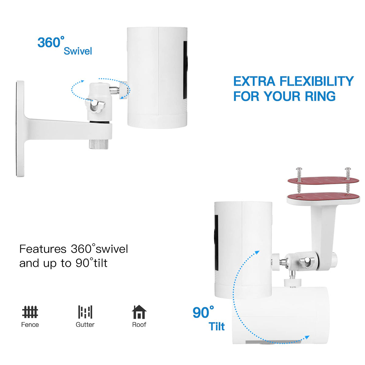 ? Extra Flexibility For Your Camera ? 360-Degree Swivel ? 90-Degree Tilt ? Stable & Durable ? Strongest Grade Adhesive Tape ? Easy To Install And Remove ? Indoor/Outdoor Use ? Compatible With Ring Stick Up Cam, Ring Stick Up Cam Pro And Ring Indoor Cam(1St Gen), Eufy Cam, Roelink Argus, Arlo Camera And Other Cameras With 1/4 Screw Head