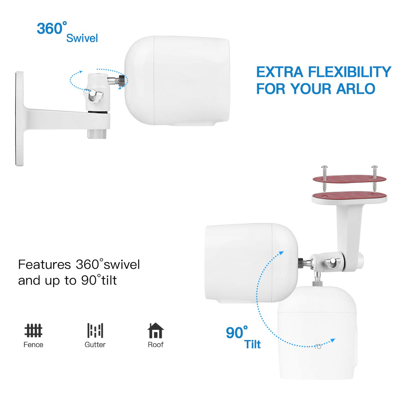 ? Great Flexibility For Your Camera ? 360-Degree Swivel ? 90-Degree Tilt ? Stable & Sturdy ? Strongest Grade Adhesive Tape ? Easy To Install And Remove ? Indoor/Outdoor Use ? Compatible With Arlo Hd, Arlo Pro/Pro 2, Arlo Pro 3/Pro 4, Arlo Ultra/Ultra 2, Arlo Go, Arlo Essential Spotlight Camera And Other Cameras With 1/4 Screw Head