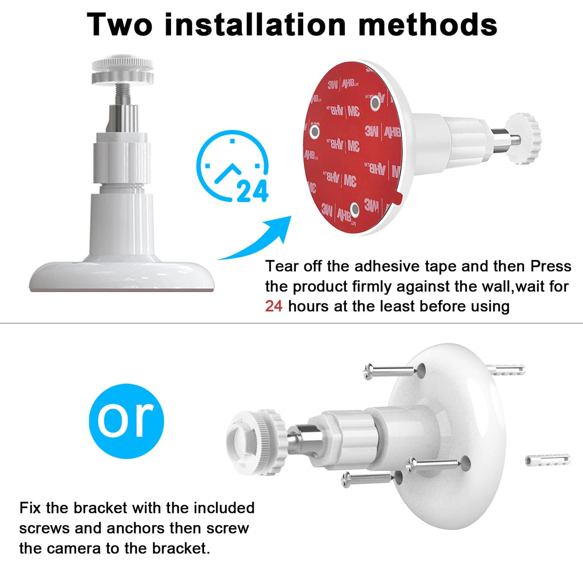 Please Note: Package Include: 3X Camera Wall Mount 9X Screws 9X Wall Plugs