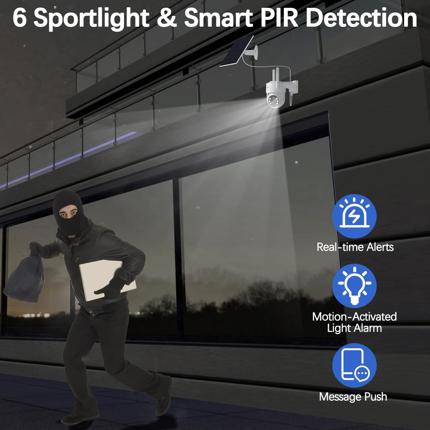 4Mp Cellular Security Camera Wireless Outdoor, 6 Spotlights And 2.5K Hd Color Night Vision Solar Powered Camera With 2.4Ghz Wifi