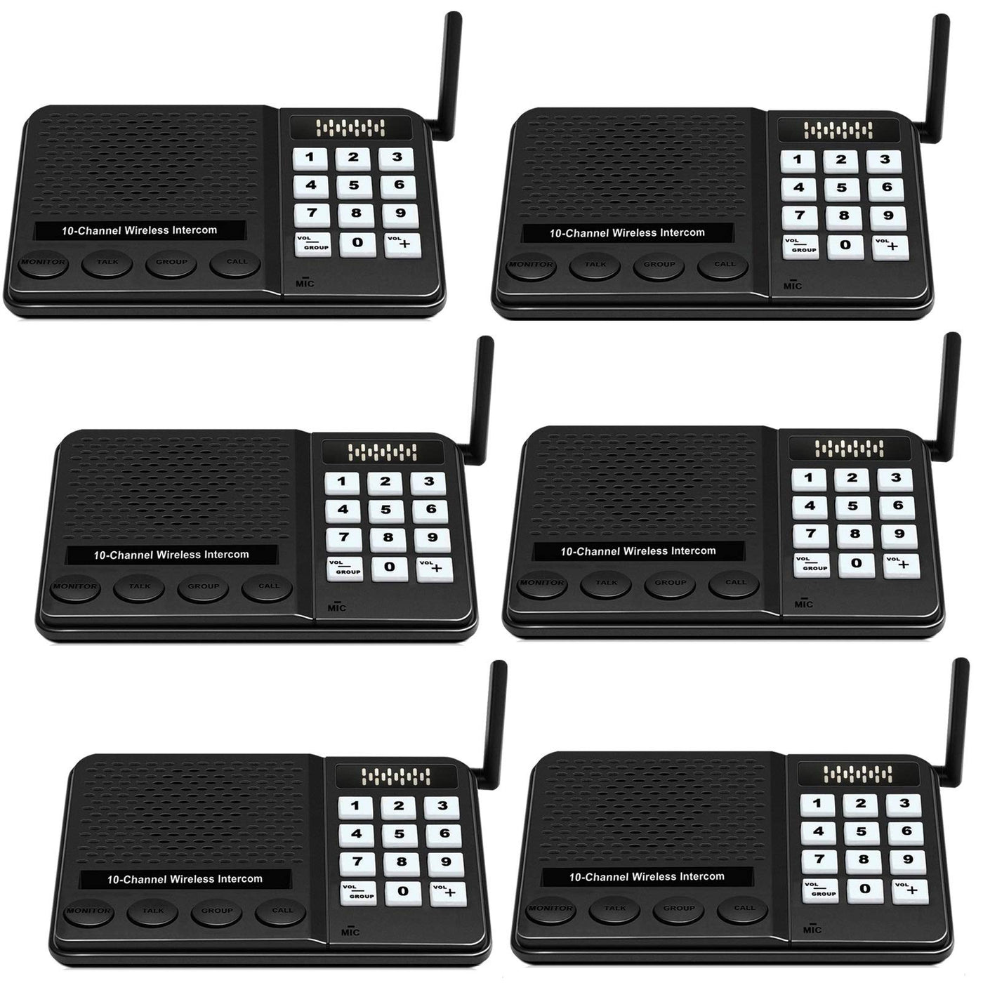Intercoms Wireless For Home - Glcon 6 Pack Long Range 1 Mile Wireless Intercom System 10 Channel 3 Code - Room To Room Home Intercom System For Business House Office Gate Restaurant Elderly