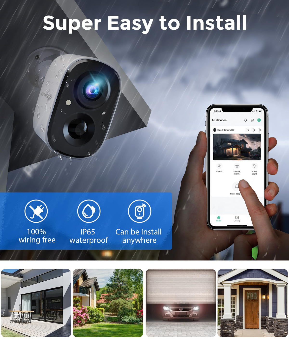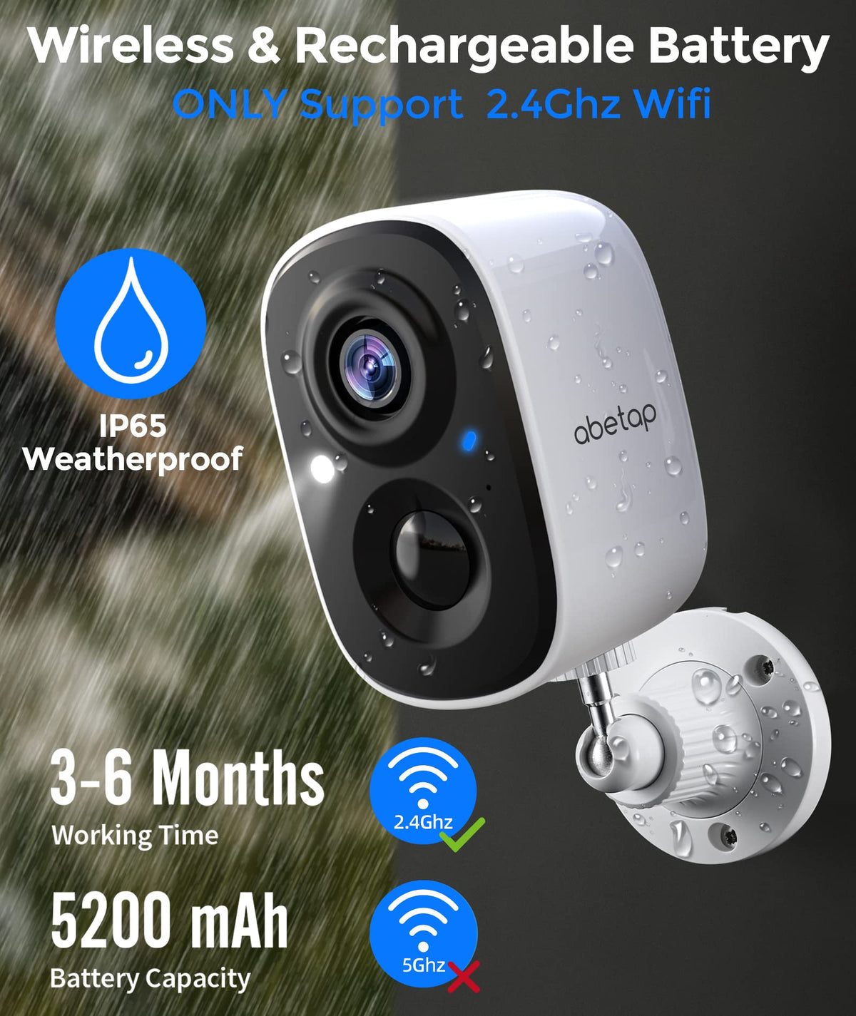 Camera With Night Vision, Ai & Pir Motion Detection, Ip65 Weatherproof, 2-Way Audio, Battery Powered Security Cameras Wireless Outside Product Features: -Outdoor Security Camera With Sd Card/Cloud Storage -Ultra Clear 1080P Hd Color Night Vision: Thanks To 1080P Crisp Resolution And An Updated Image Sensor, The Abetap Wireless Outdoor Camera Capture Video Smoothly And Clearly, Day And Night. -Smart Ai Recognition & Pir Motion Detection: The Hd Security Camera Distinguishes Itself From Traditional Cameras Because It Uses Advanced Ai Recognition Technology & Pir Motion Detection. -True Wireless & Rechargeable Battery Powered: This Outdoor Security Camera Requires No Power Cord Or Network Cable -Real-Time Two-Way Audio: With A Built-In Speaker And Microphone, This Security Camera Wireless Outdoor Supports Real-Time Two-Way Audio Calls. -Multi-User Remote Monitor: The Wireless Outdoor Camera Supports Sharing The Device With Your Family Or Friends Via The App. Whats In The Box? -Outdoor Security Camera *2 -Bracket *2 -Mounting Kit *2 -Usb Charging *2 -Operation Instruction *1