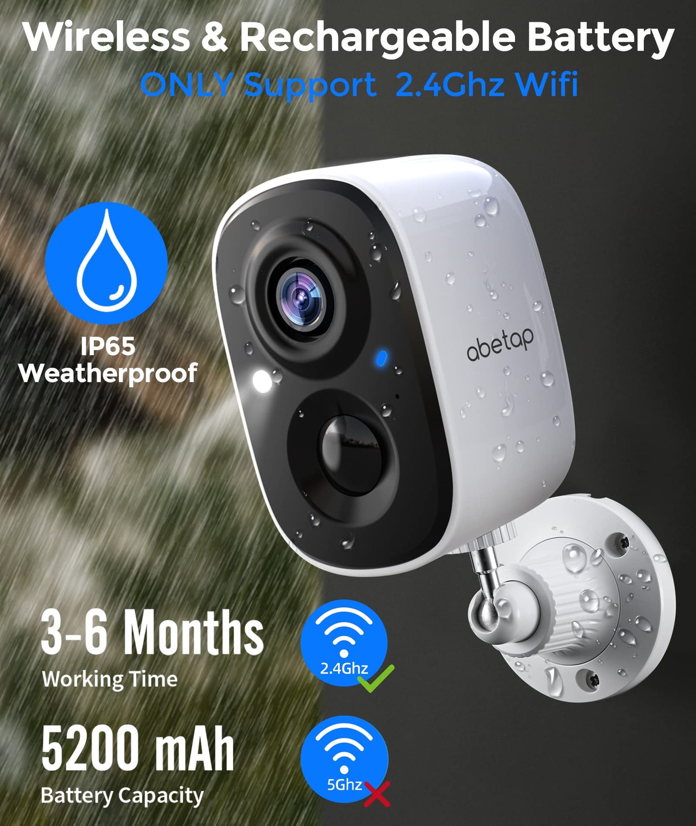 Abetap Wireless Security Camera Outdoor Wifi Security Cameras W/Color Night Vision, Ai/Pir Detection, 2 Way Talk, Cloud/Sd, We