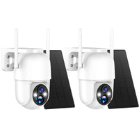 Allweviee 2Packes Solar Security Outdoor Wifi Camera, Pan Tilt 355 View Ip65 Waterproof Rechargeable Wireless Battery Powered 1080P 2K 3Mp Ptz Camera With Pir, Color Night Vision,2-Way Talk, 4Dbi Antenna