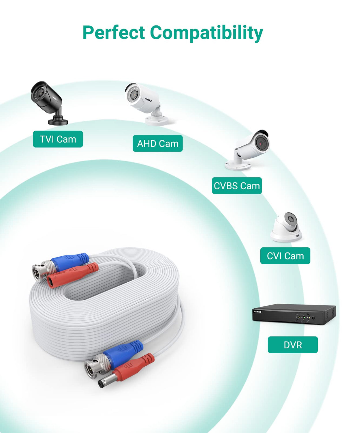 Product Description Are You Looking For A Surveillance Camera Cable To Extend The Connection Between Your Security Camera And Dvr? Annke 2-In-1 Cable Can Cover A Distance Of 100 Feet (30 Meters) Transmitting Video Signals And Supplying Dc Power For Your Security Cameras Simultaneously Now It'S Easier Than Ever To Mount Your Cameras Just About Anywhere You Would Like With Its Exquisite Workmanship And Durable Quality Annke Cable Will Be Your Optimal Choice For Video Surveillance Key Features Premium Pure Copper Wire Corepvc-45P Molding Flexible And Resilient I Set S R L Certified & 24/7 Customer Care Whats In The Box * 4 X 100Ft/30M Video & Power 2-In-1 Cable>* 4 X Bnc To Bnc Connector>* 4 X Bnc To Rca Connectors* Cable Clip Kit & User Manual ** For Camera With Dc Power Only **