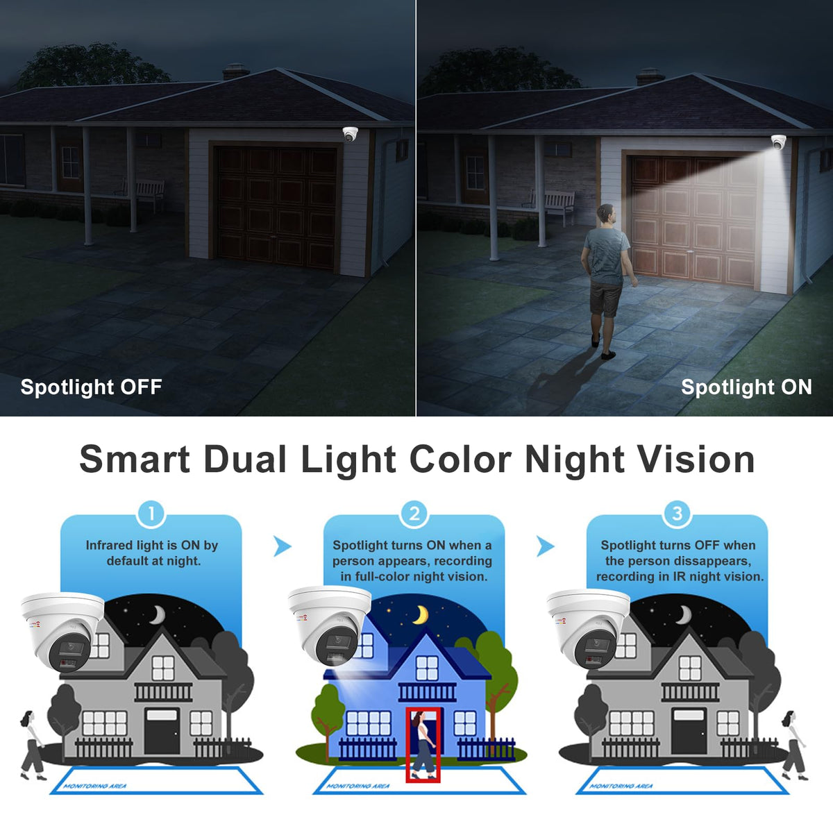 Anpviz 5Mp Ai Poe Camera Outdoor Ip Camera Poe Ip Camera Metal Turret Poe Camera, With Human & Vehicle Detection, Ir Light & White Light, Built-In Mic, Wide Angle,120Db Ture Wdr, Ip67 Waterproof