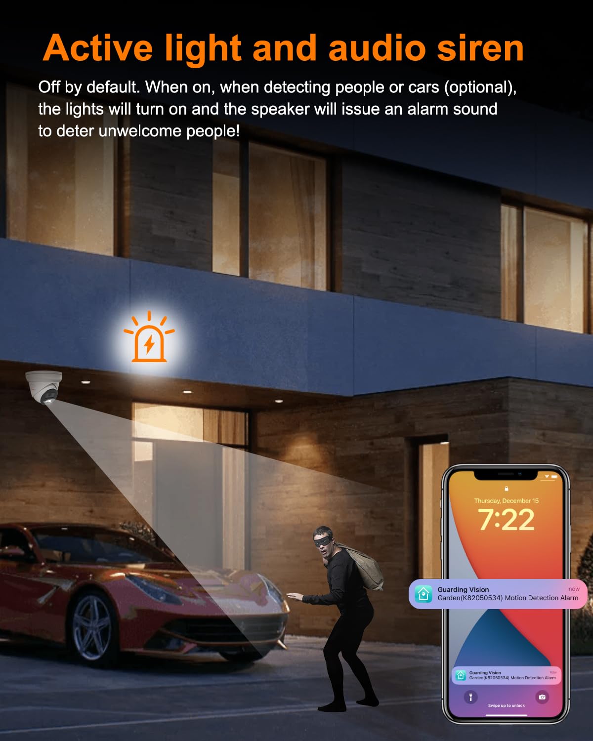 Anpviz 8Mp Ip Poe Camera,Active Deterrence Turret Ip Security Camera Outdoor, 2 Way Audio, Human/Vehicle Detection, Smart Color
