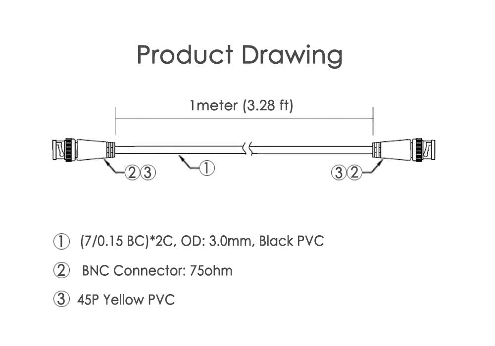 Bnc Male To Bnc Male Extension Cable Connector Color: Yellow Wire Color: Black Package Content: 6X Bnc To Bnc Cable
