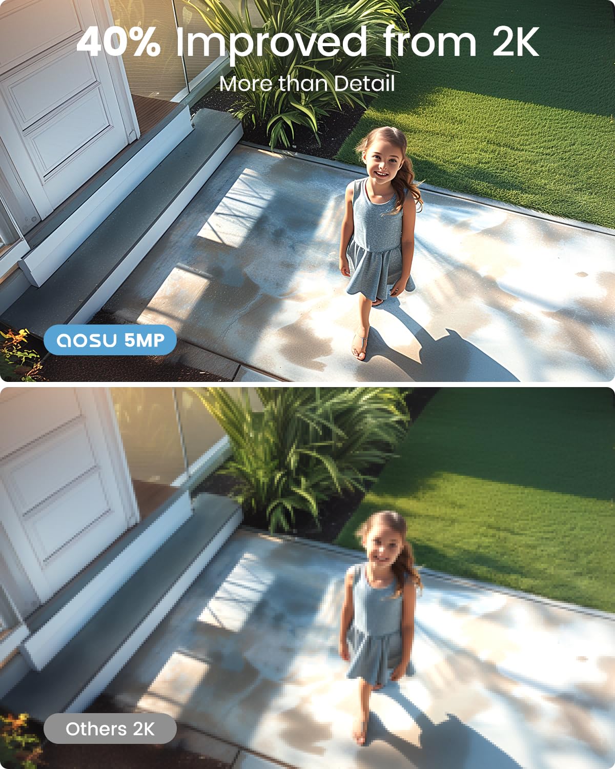 Aosu 3K/5Mp Solar Security Cameras Wireless Outdoor, Ultra Wide Angle, Cam To Cam Track & Sync, Home Security System With Color Night Vision, Spotlight Smart Alarm, No Subscription, 2.4G & 5G Wifi