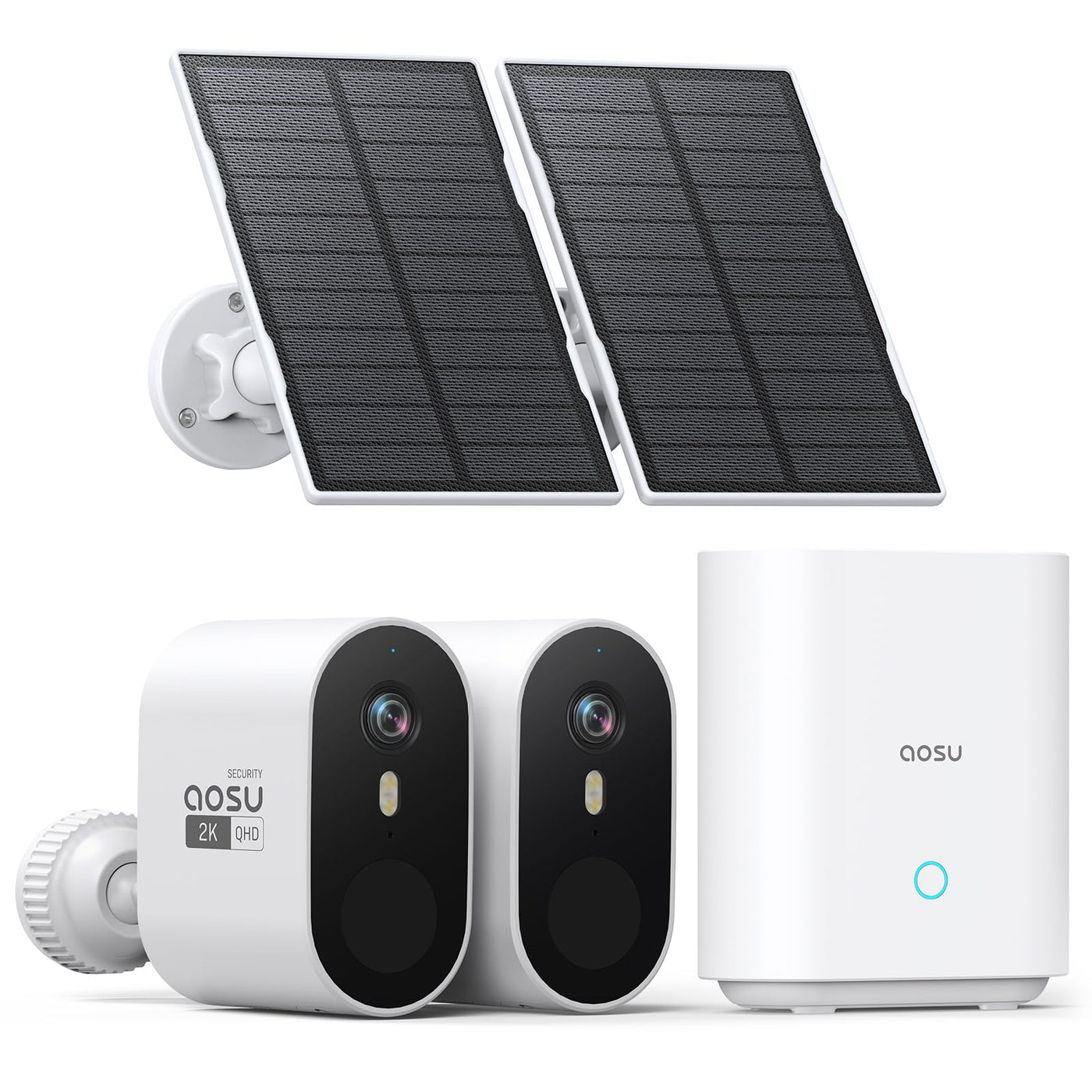 Aosu Solar Security Cameras Wireless Outdoor, 2K Qhd Home Security System, 2 Cameras Kit With 166� Ultra Wide View, Forever Power, Spotlight Camera, 32G Local Storage, No Monthly Fee