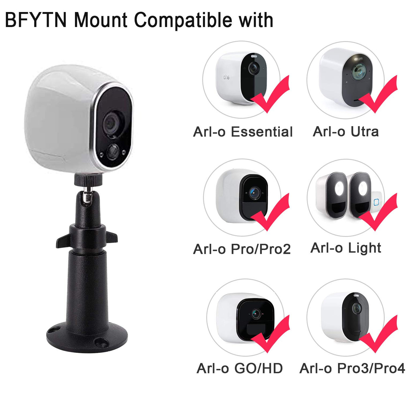 Bfytn Security Camera Wall/Ceiling Mount, Adjustable Indoor/Outdoor Mount Compatible With Arlo Pro/2/3/Ultra, & Others Ring Stick Up Cam Battery, Eufycam E, Camera With 1/4 Screw Head (2Pack, Metal)