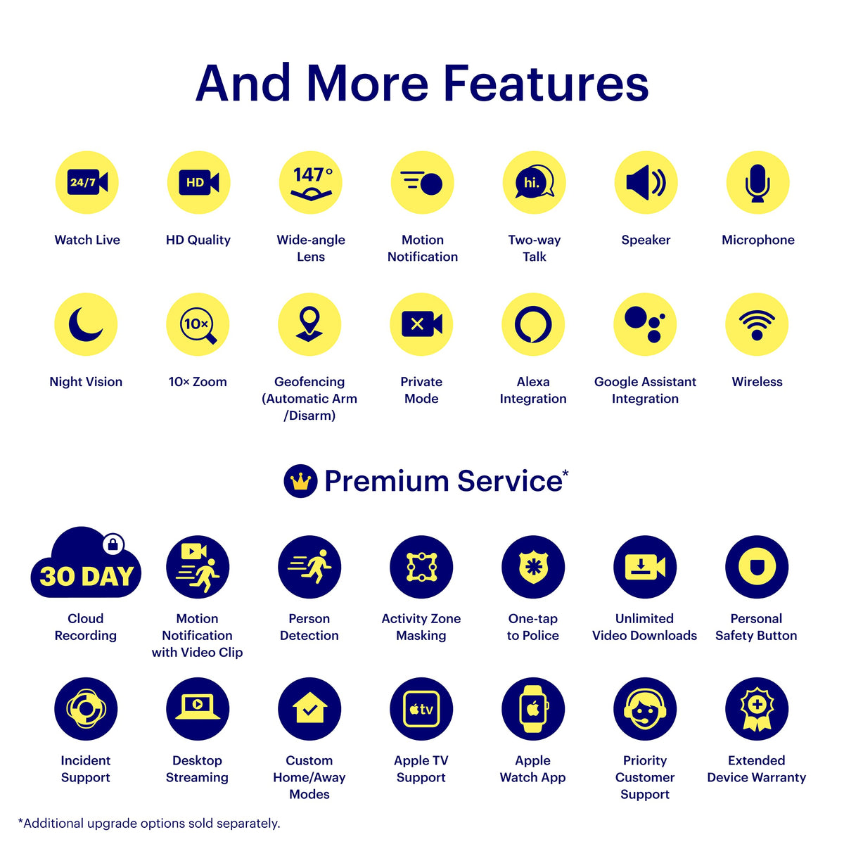 An Indoor Wifi Home Security Camera With Award-Winning Technology And Design. Trusted By Over A Million Users Including Over 10,000 First Responders. Beautifully Designed In New York And Only 6 Inches Tall, It Seamlessly Blends Into Your Home And Doesnt Look Like A Security Camera. It Gives You The Best Home Security And Comfort Available At This Price. Canary View Includes 24/7 Watch Live Hd, 10X Zoom, Motion Notification And Two-Way Talk With Built-In Speaker And Microphone, Enabling Live Conversations Via Your Camera And Phone With People And Pets At Home. With Its 147 Wide-Angle Lens And Night Vision, Canary Automatically Adjusts To Let You See Clear As Day, Even At Night. With Its Privacy Settings At Your Fingertips, You Can Set The Camera To Arm/Disarm Automatically When You Come And Go; Or Use The Private Mode To Pause Your Camera From Recording. It Is Quick And Easy To Set Up: Download The Canary App For Ios Or Android, Plug In The Camera, Connect To Wi-Fi And Monitor Your Home. Or Use Your Canary View As A Pet Camera, Baby Monitor, For Elderly Care Or Childcare. Canary Is A Us-Based Company With All Data Stored In Certified High Security Data Centers Using Aes 256-Bit, Tls & Ssl Encryptions And Access Control Systems To Ensure Complete Privacy. Additional Upgrade Options: You Can Access Even Many More Features With Canarys Premium Service Plan Including 30-Day Cloud Recording, Smarter Motion Notification With Video Clips, Person Detection, Activity Zone Masking, Unlimited Video Downloads, One-Tap To Police, Personal Safety Button, Incident Support, Priority Customer Support, Extended Device Warranty, Desktop Streaming, Customized Modes, Apple Tv & Watch Support. In Addition To Canarys Premium Service Plan, You Also Have The Option To Add An Alarm Monitoring Service. With Canarys Professional Monitoring Plan, Our Certified Experts Monitor Alerts 24/7 And Dispatch First Responders For You In Case You'Re Busy Or You Simply Miss Your Phone Alerts.