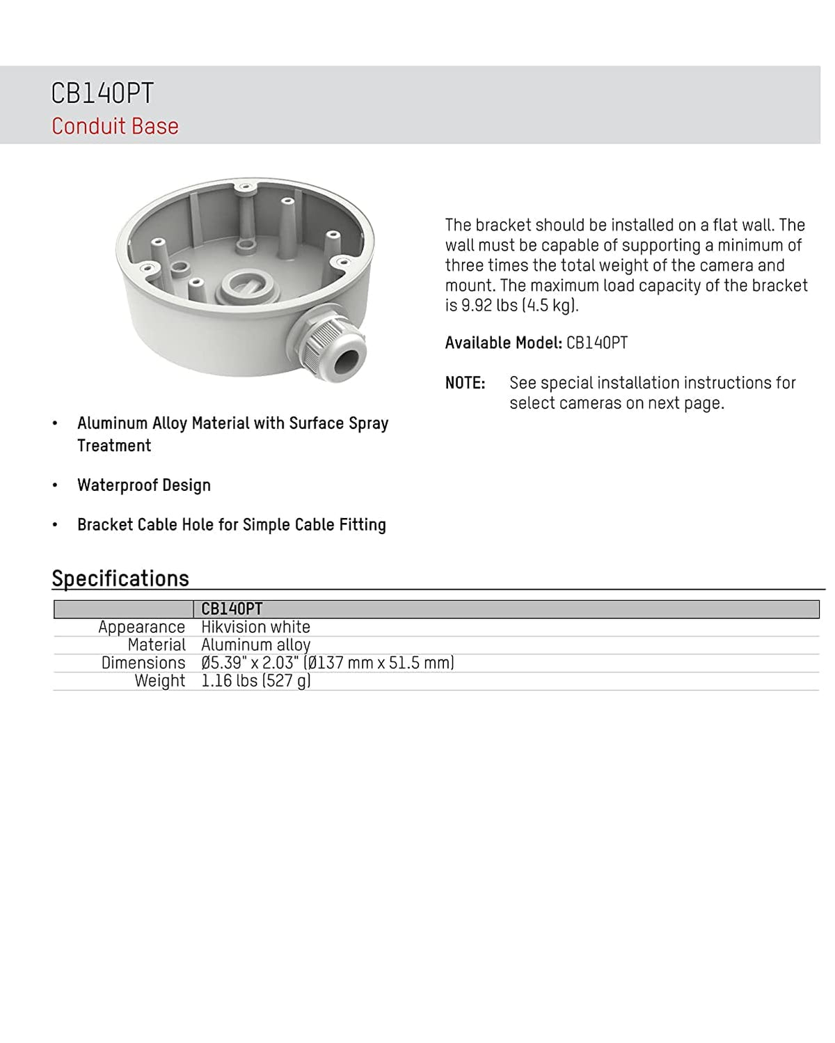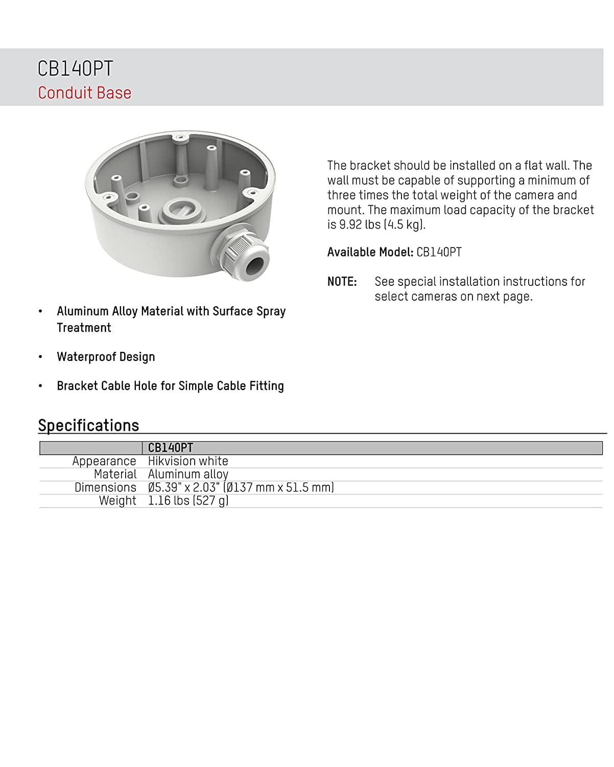 Hik Vision Ds-1280Zj-Dm21 Wall Mount Bracket For Ds-2Cd2358G1-I And Ds-2Cd2347G1-Lu. The Bracket Should Be Installed On A Flat Wall. The Wall Must Be Capable Of Supporting A Minimum Of Three Times The Total Weight Of The Camera And Mount. The Maximum Load Capacity Of The Bracket Is 9.92 Lbs (4.5 Kg).