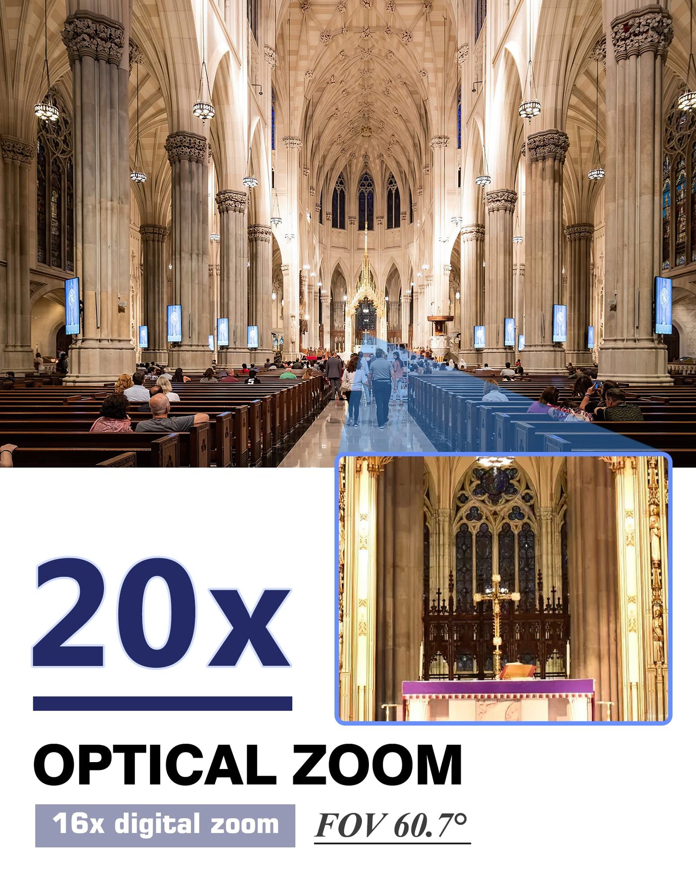 Chameye Ndi Ptz Camera 20X Optical Zoom Ai Auto Tracking Ptz Camera With Lcd Display, 3G-Sdi Ip 1080P 60Fps Poe Live Streaming Hdmi Ptz Camera For Church Worship Education Events, C720N Black