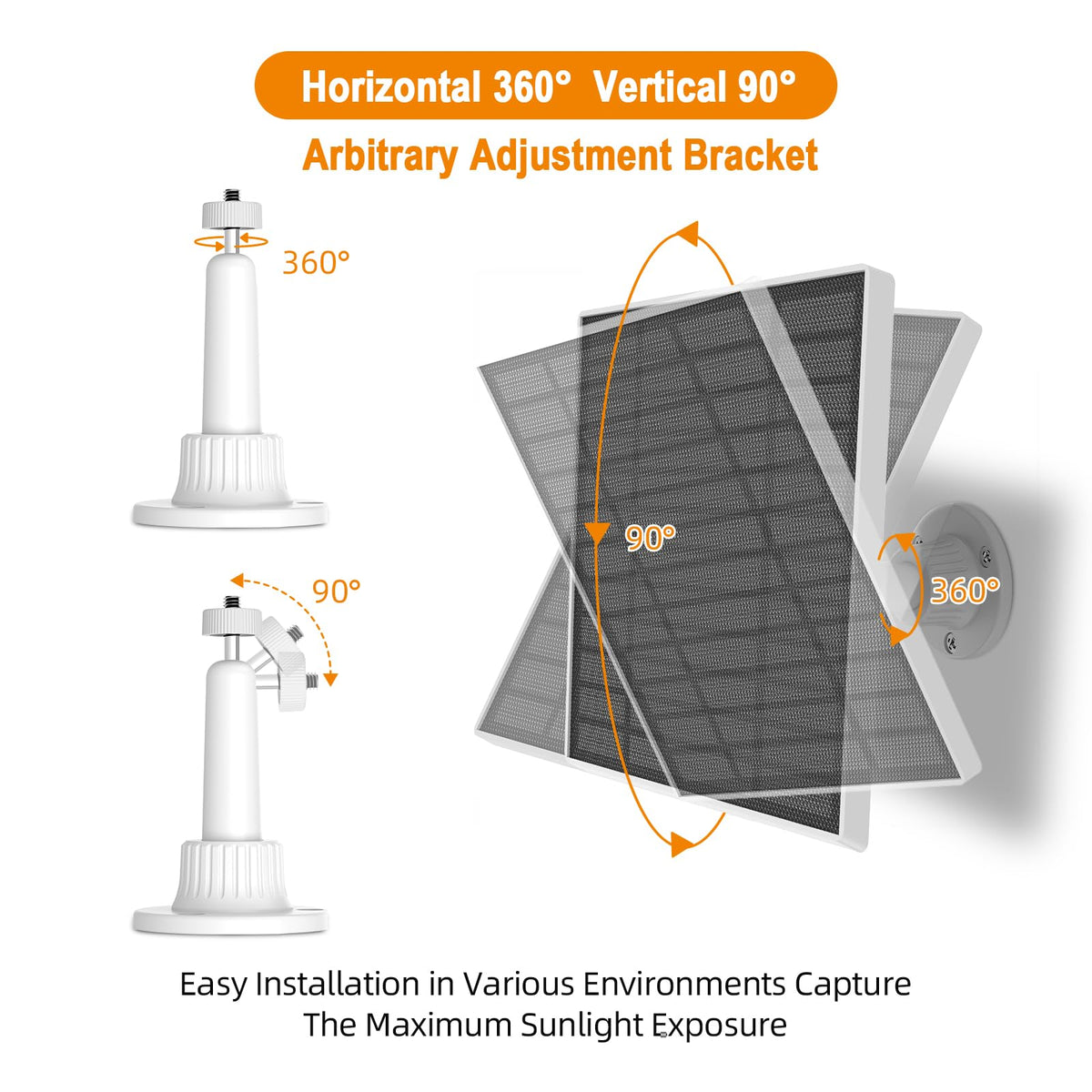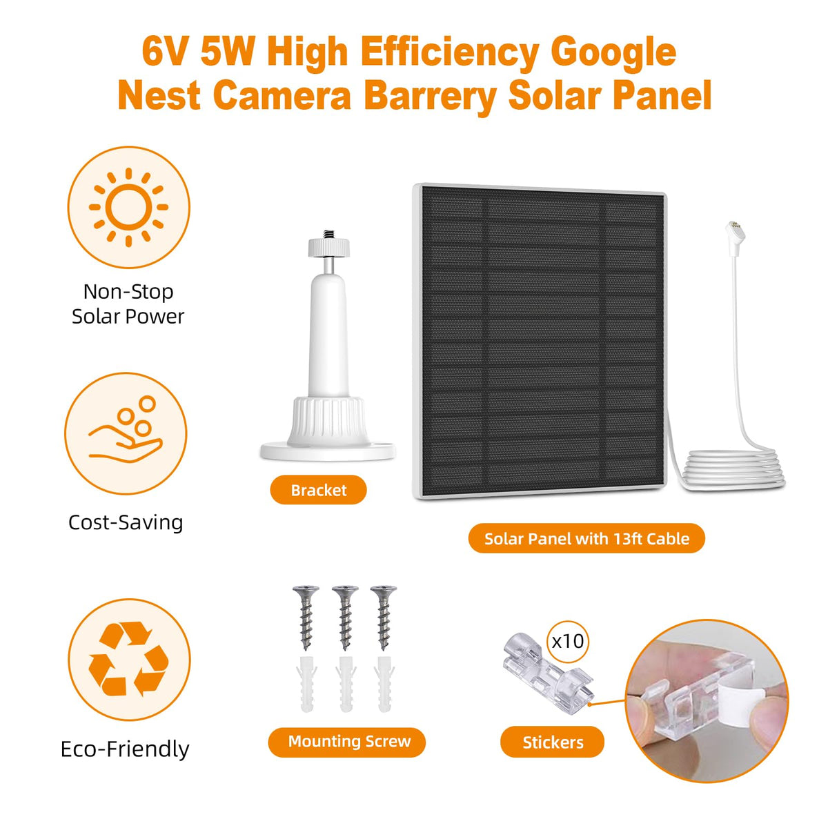 Solar Panel Charger For Google Nest Camera Outdoor & Indoor (Battery Version), 6V 5W Output Solar Panel Fast Charge, Camera Solar Panel Charger With 360 Degree Adjustable Solar Holder