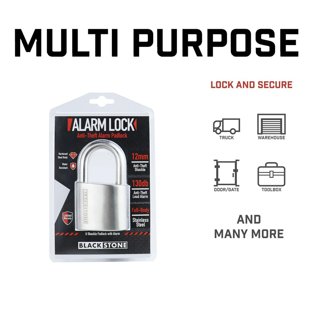 This 12Mm Shackle Stainless Steal Body Padlock With Loud 130 Db Alarm Is At Level Above Your Average Padlock. The Alarm Can Be Set Off By Vibration, Breakage, And Other External Force. For Out Door Use, Our Alarm Lock'S Electronic Components Are Protected By Weather Seal And Rated Ip65.