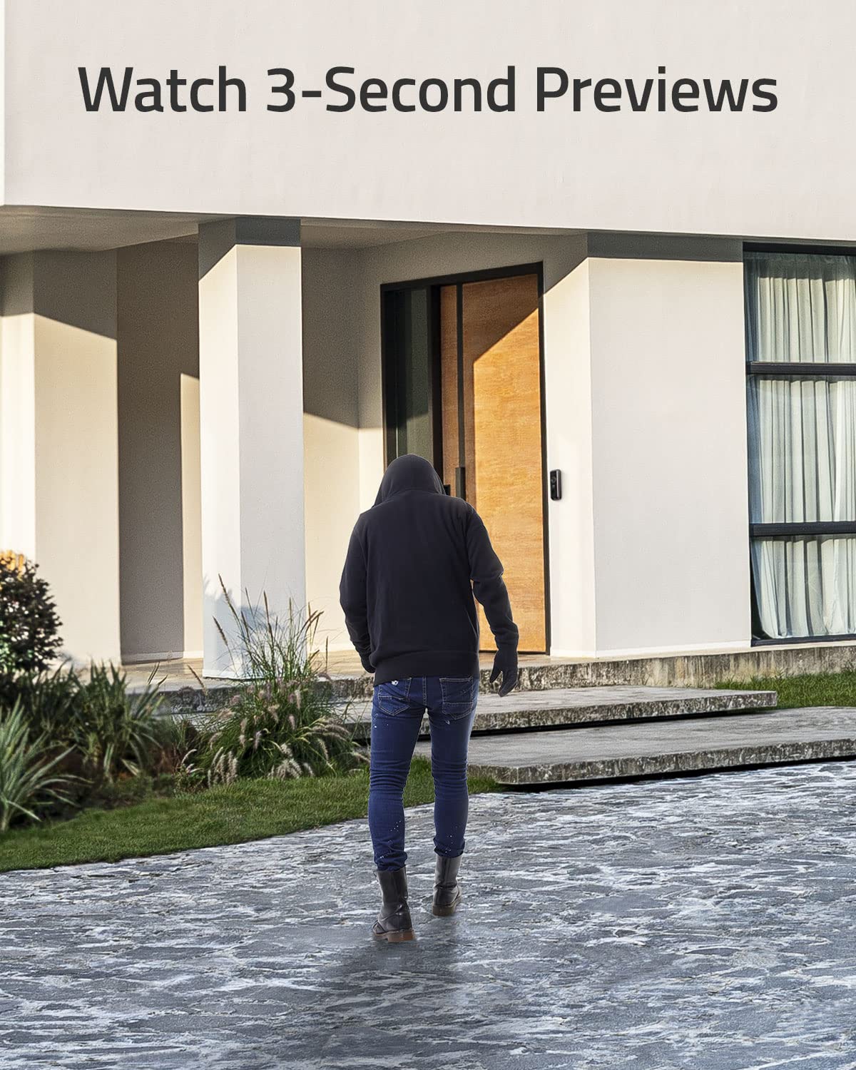 Dual Cam Technology. The View Offered By Ordinary Cameras Is Just Too Limited To Provide Complete Protection. With A Low-Angle Camera, Blindspots Are Eliminated And Your Doorstep Is In Full View. | Delivery Guard*. Get Instantly Notified When Your Package Arrives With Delivery Guard. Plus, You'Ll Receive Pick-Up Reminders And Alerts If Someone Approaches Your Package. | 3-Second Preview Videos. See What Triggered A Recording, So You Know How Visitors Approached Your Door And What They Were Doing. | 2K With Hdr. 2K Hd Surveillance Ensures Visitors Can Be Identified From The Details. And Thanks To High Dynamic Range, Visitors Who Are Backlit By The Sun Can Be Seen In Perfect Color And Clarity. | No Monthly Fee. Access Your Recordings Anytime On Local Storage Without Charge. No Subscription Fee Required.