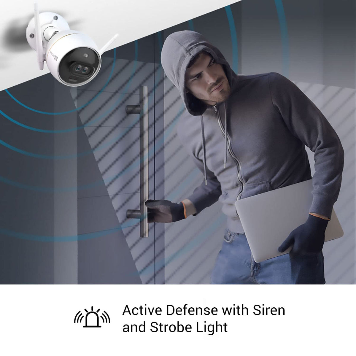 Ezviz Outdoor Camera Dual Lens, Surveillance Camera With Color Night Vision & Human/Vehicle Detection, Active Defense With Light & Siren, Two Way Talk, Ip67, No Subscription Fee Cloud(C3X Cloud)