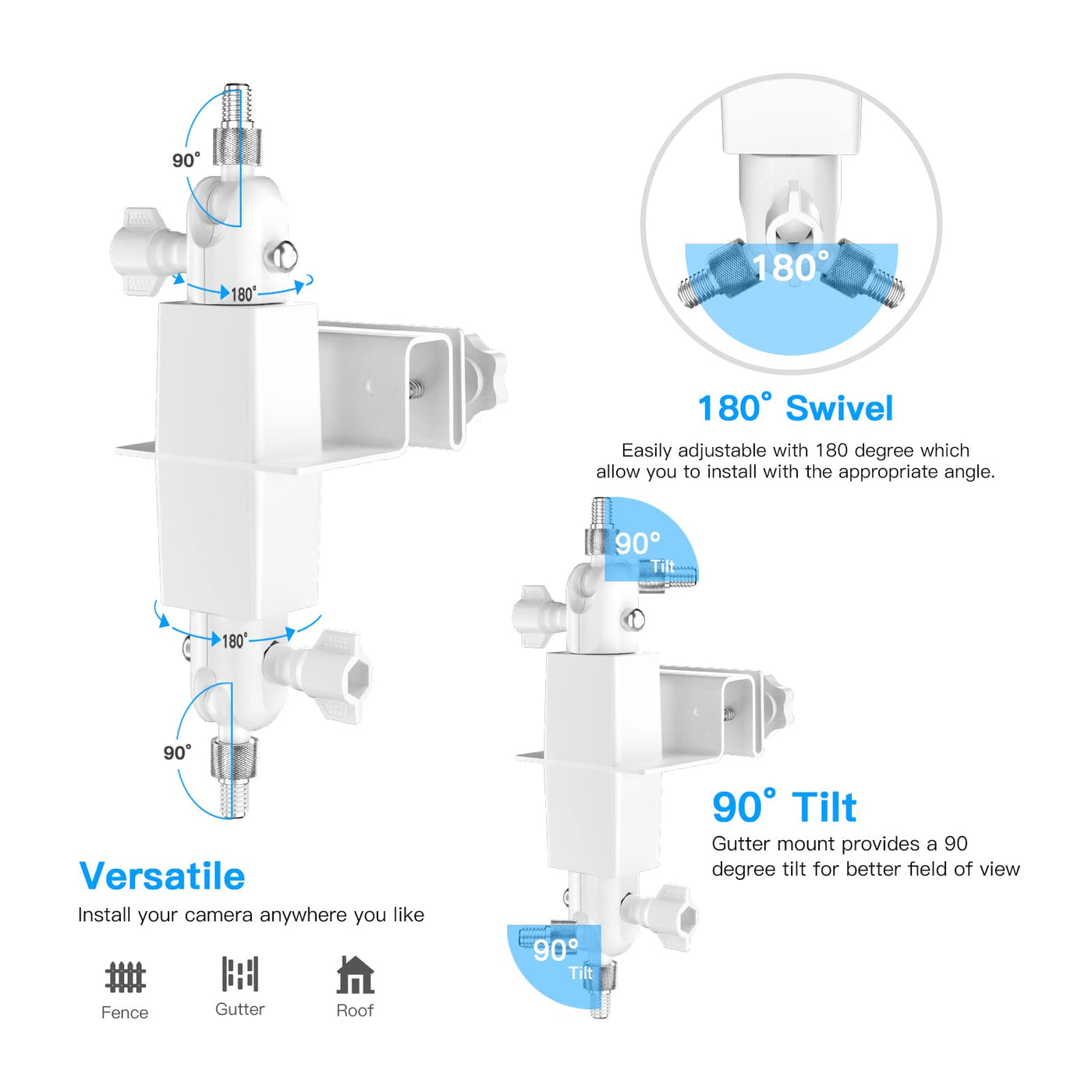 Holaca'S 2-In-1 Gutter Mount Is Universal For Stick Up Cam Pro Solar Panel Ring Super Solar Panel And Spotlight Cam Pro/Plus, Stick Up Cam Battery/Wired Camera. Compatible With Other 1/4 Screw Cameras And Solar Panels.(White)