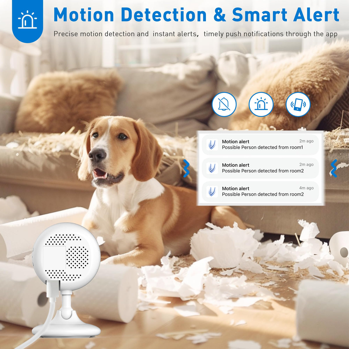Home Security 2K Camera, Indoor Camera For Dog/Pet/Elder/Baby Monitor, Smart Phone App Siren, 2 Way Audio, Advanced Motion Detec
