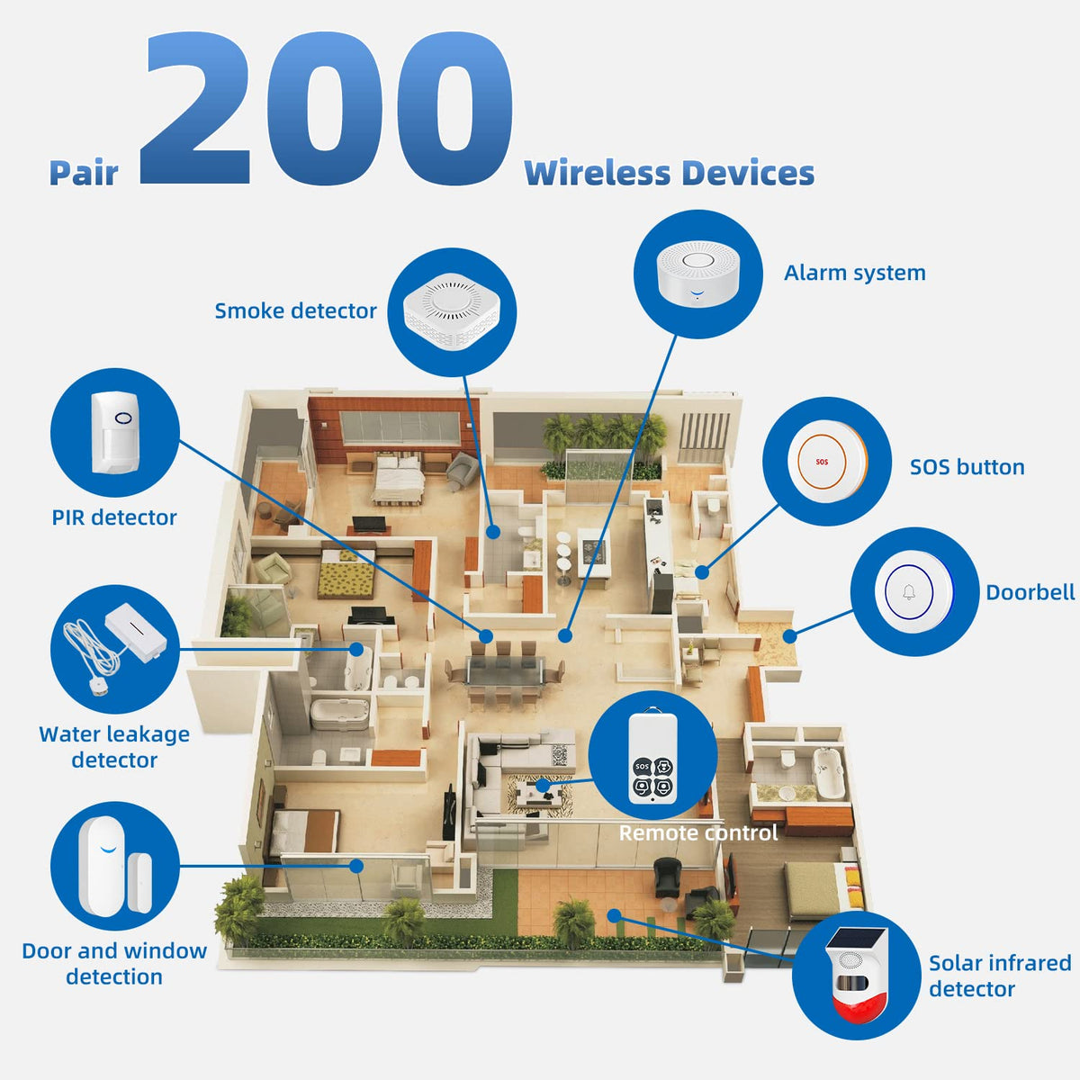 Free Ios/Android Smart-Phone App, Whenever Any Sensor Is Triggered, Your Phone Will Receive An Free Alert Notification.It Has Scheduled Arm/Disarm Function, Set On Demand, And Automatic Anti-Theft. Control Home Security Anytime, Anywhere. You Could Share The Device To Your Family Members To Control This Smart Alarm System, And Allow Them Get The Notification.&Nbsp;Specifications:App: Tuya Smart/Smart Lifearm: Alarm With Sound And Light Flashhome Arm: Only Light Flash To Alarmdisarm: Only Sos Alarm Availabletiming Control: Arm / Home Arm / Disarmwireless Frequency: 433Mhz&Nbsp;Package Includes:1* Wifi Main Siren1* Motion Sensor4* Contact Sensor1* Remote Control1* User Manual