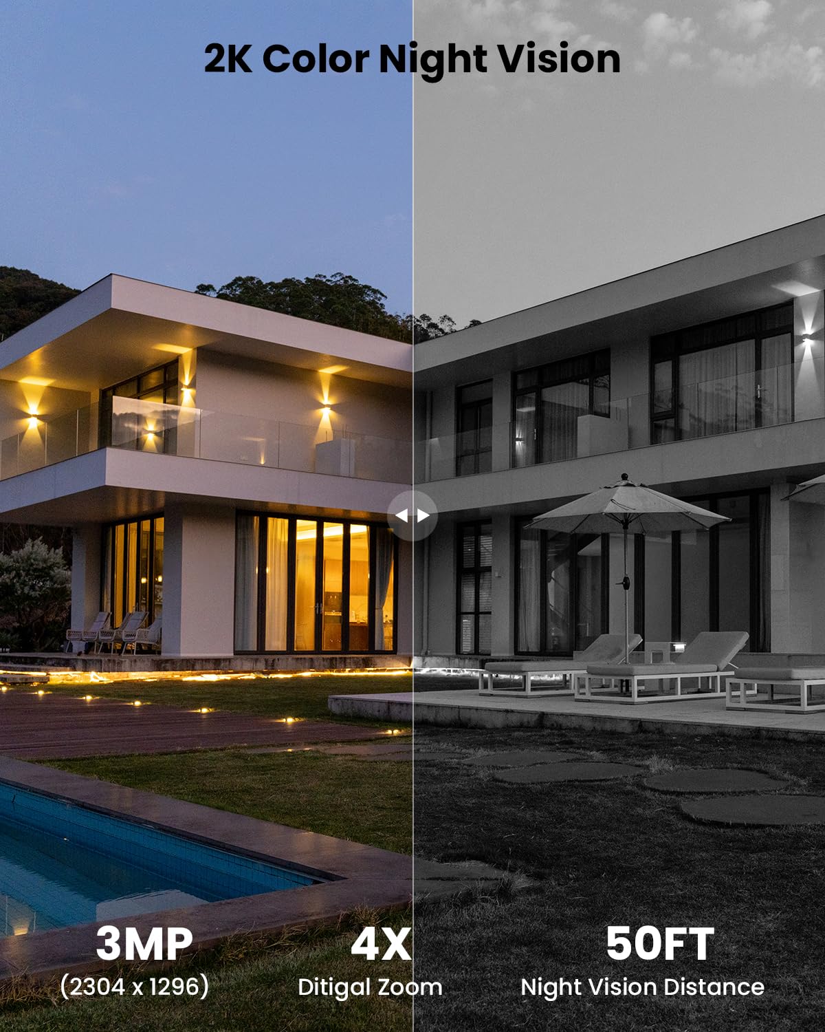 Iegeek Security Cameras Wireless Outdoor, 2K Solar Wifi Camera For Home Security System, Battery Powered Surveillance Cam With S