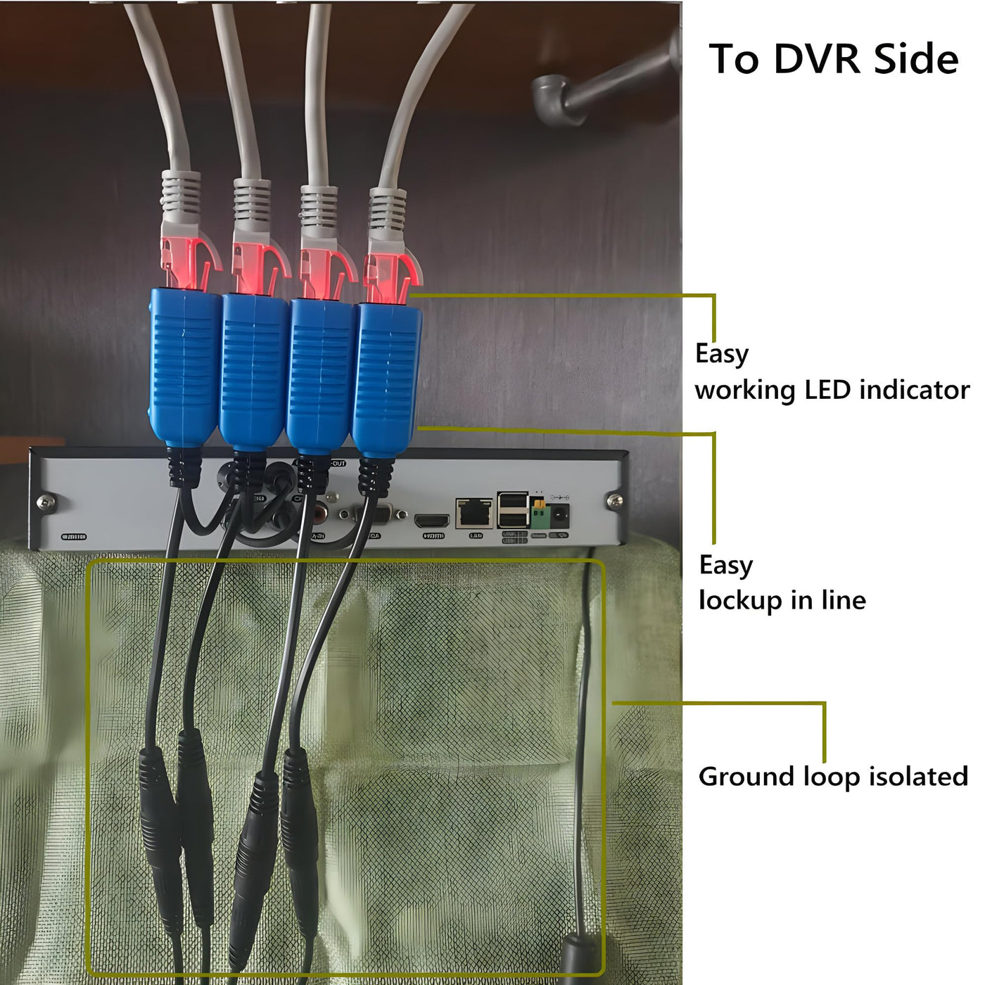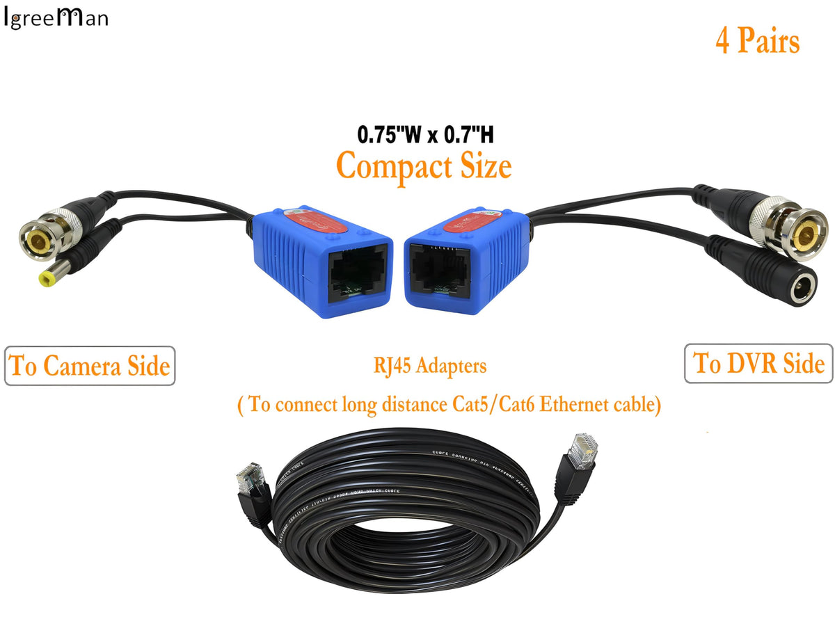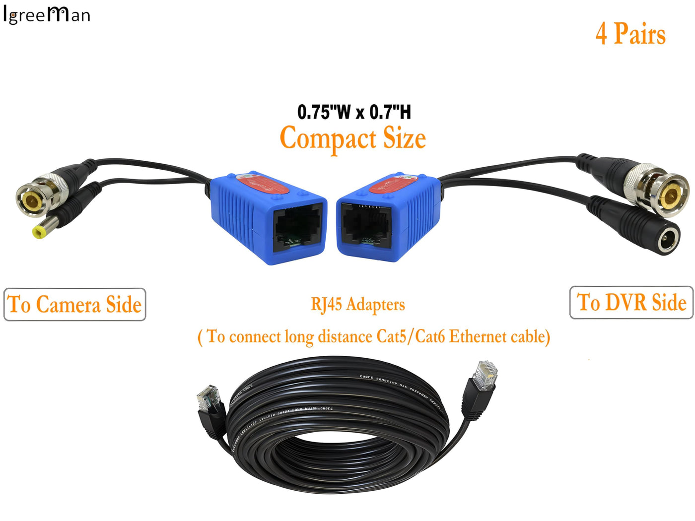 Igreeman 4 Pair Passive Video Balun Bnc To Rj45 Adapter With Power, 1080P 8Mp Surveillance Analog Camera Ethernet Cable Transcei