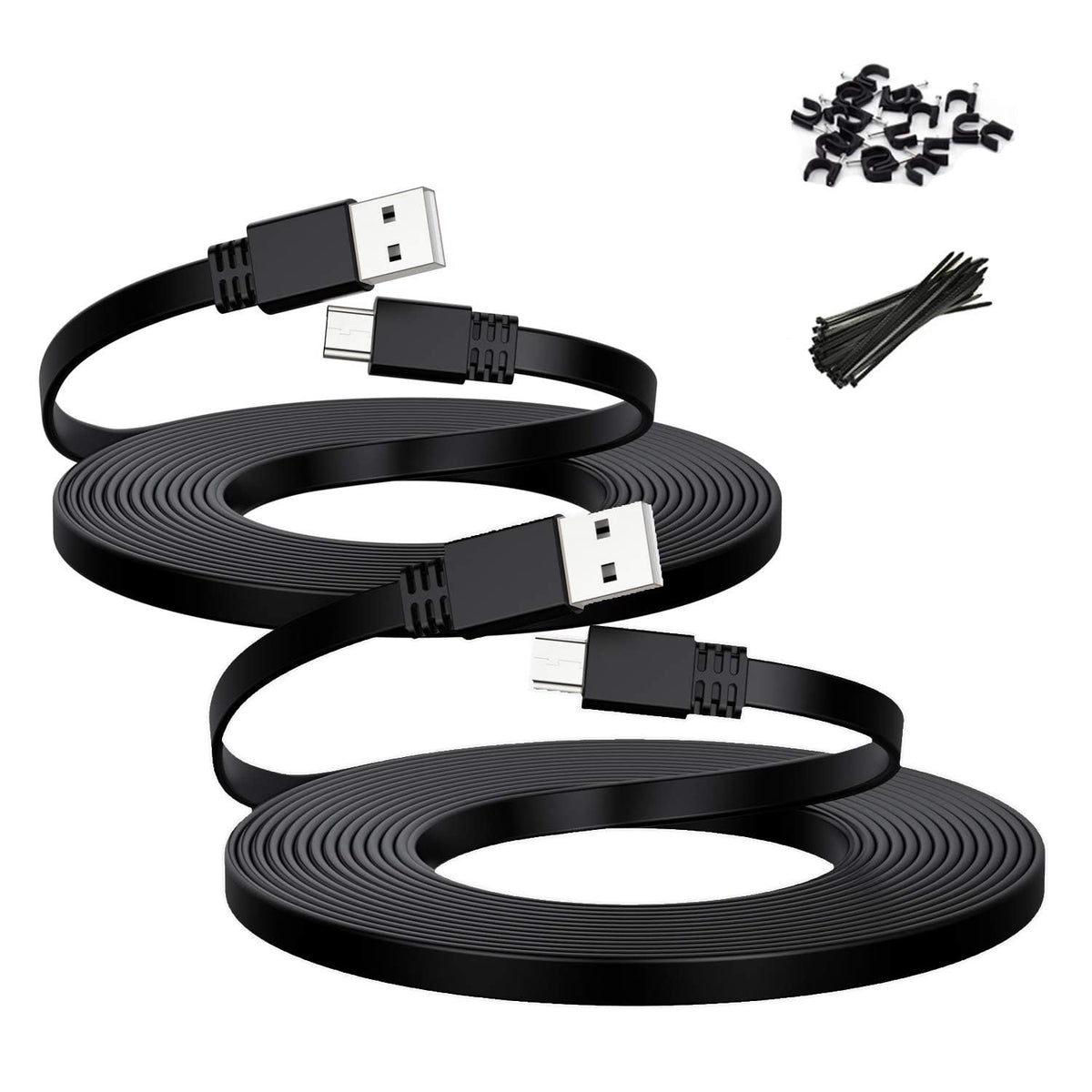 Itramax Micro Usb Power Cable 30 Ft (2 Pack),Flat Micro Usb Charging Power Cord,Charger For Wyze Cam V3 V4,Yi Cam,Nest Cam,Blink