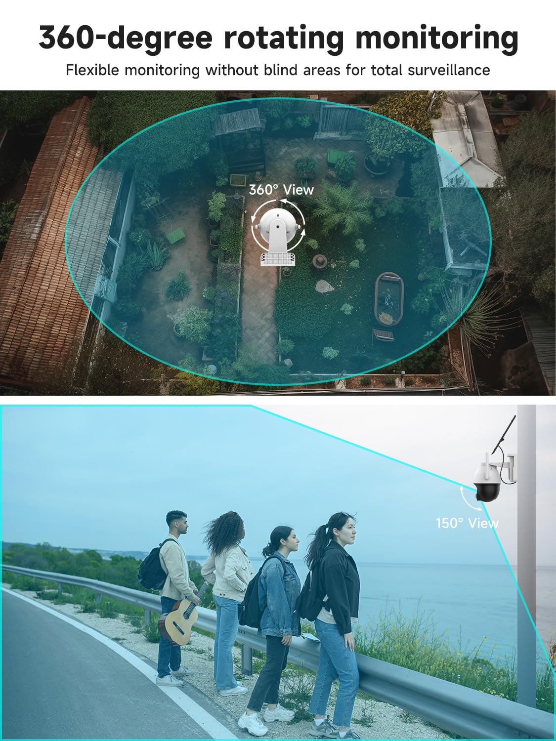 Juancloud Solar Security Cameras Wireless Outdoor, 2K Camera Outdoor With Color Night Vision,Spotlight Alarm,Pir Detection,2-Way Talk