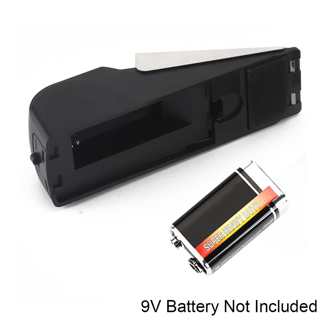 How To Use It? 1) Put One 9V Battery(Not Included) 2) Select Sensitivity Level: M(Meddle), L(Low), H(High) 3) Turn On Alarm 4) Insert Alarm Under Door Features 1) Home Safety Guarantee. 2) Stainless Steel Cover, Small Size. A Wedge-Shaped Alarm Prevents Intruders From Opening The Door. 3) The Adjustable Sensitivity Switch Can Prevent Tampering. Powered By A 9 Volt Battery (Not Included). 4) It Has Three Sensitivity Levels And Super Noise. When Activated, A Continuous 120 Db High Tone Alarm Will Sound. 5) Easy To Operate, Just Put It Under The Door. Specifications Color: Black Material: Plastic+Metal Working Modes: Vibration Sensor Volume Of The Alarm: 120 Db Three Sensitivity: High, Medium, Low Power Supply: 1*9V Battery (Not Included) Size: 14*4.5*4Cm/5.51*1.77*1.57In Package Content: 4 X Door Stopper Alarm