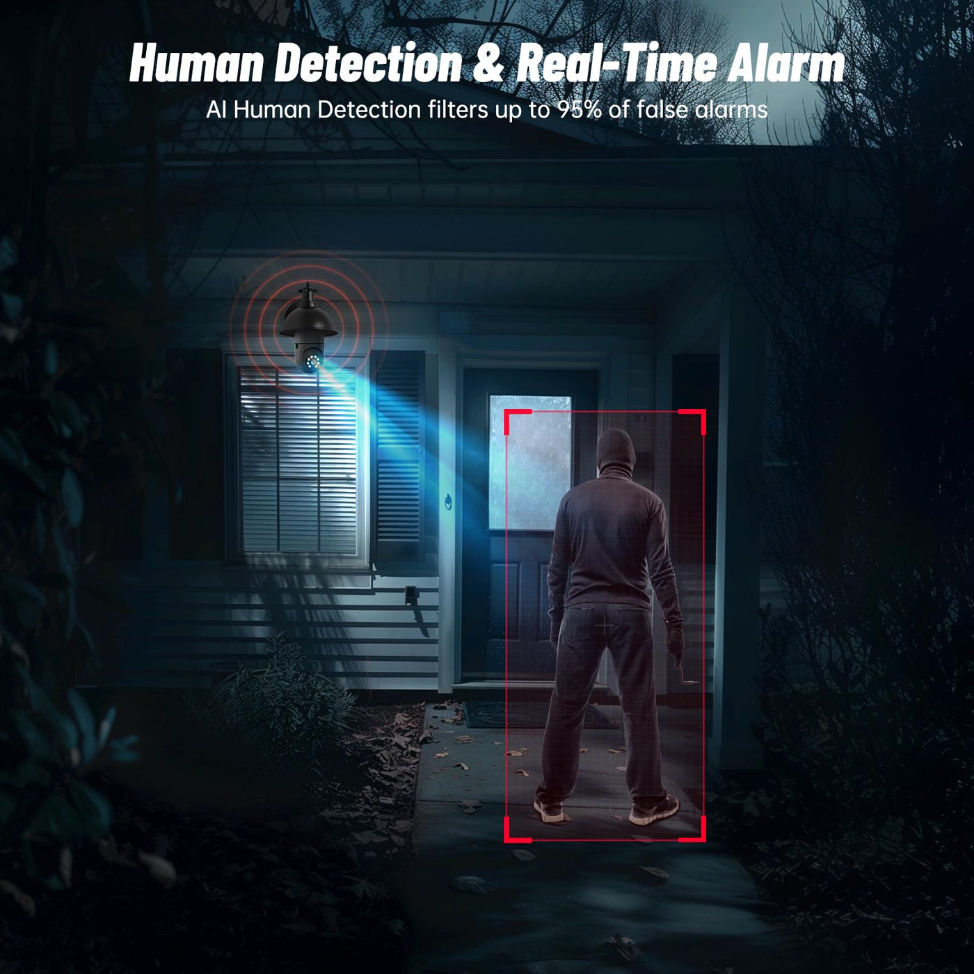 Light Bulb Security Camera 5G Wifi 2K Light Socket Security Cameras Wireless Outdoor Eseecloud, 360 Screw In Sight Bulb Motion D