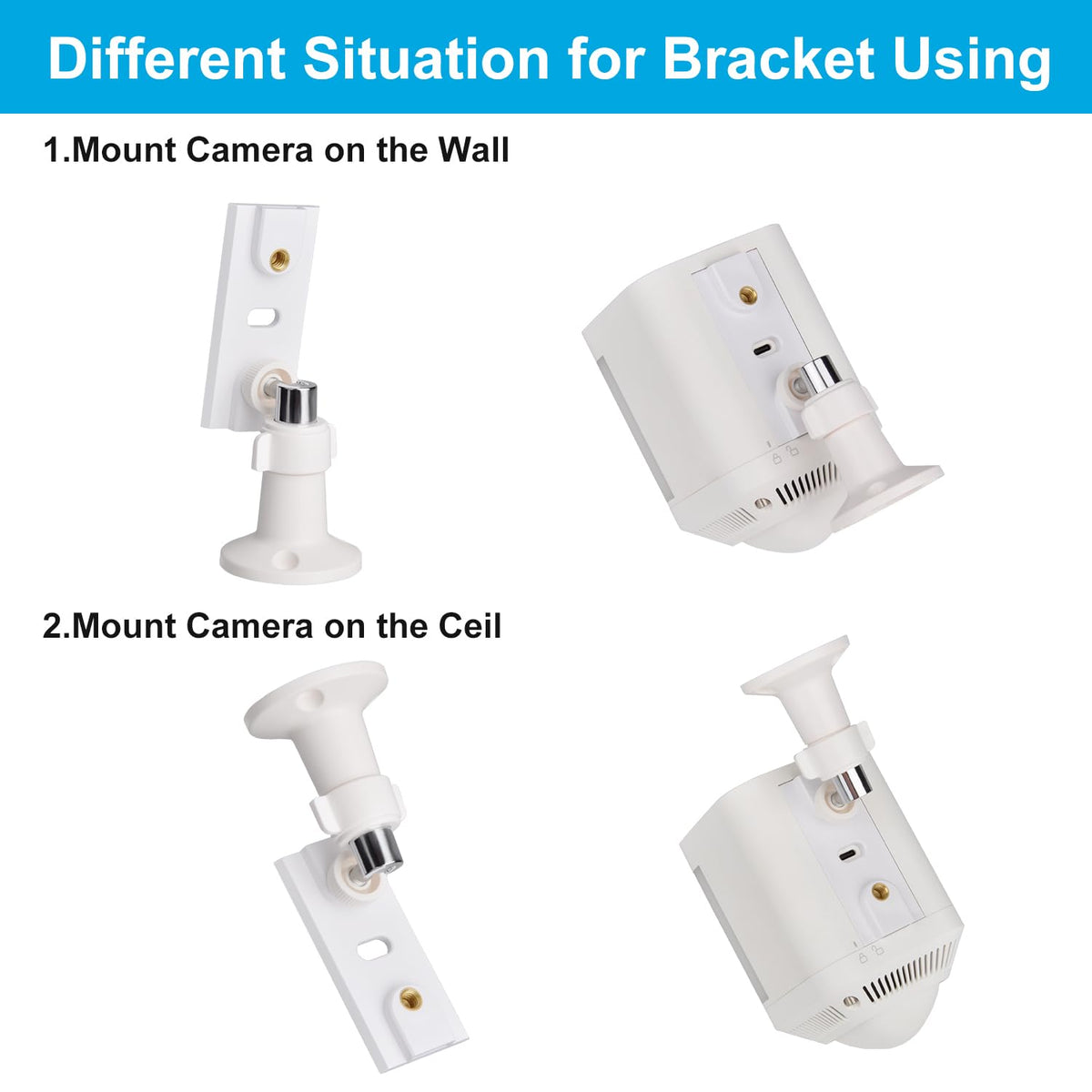 Place Where You Needed. Adjustable Security Wall Mount Can Be Easily Adjusted With 360-Degree Swivel And 90-Degree Tilt, Allowing The Flexible Positioning For Your Cameras. You Can Adjust Your Camera To Any Angles You Want And Ensure Your Household Safety In An All-Round Way.