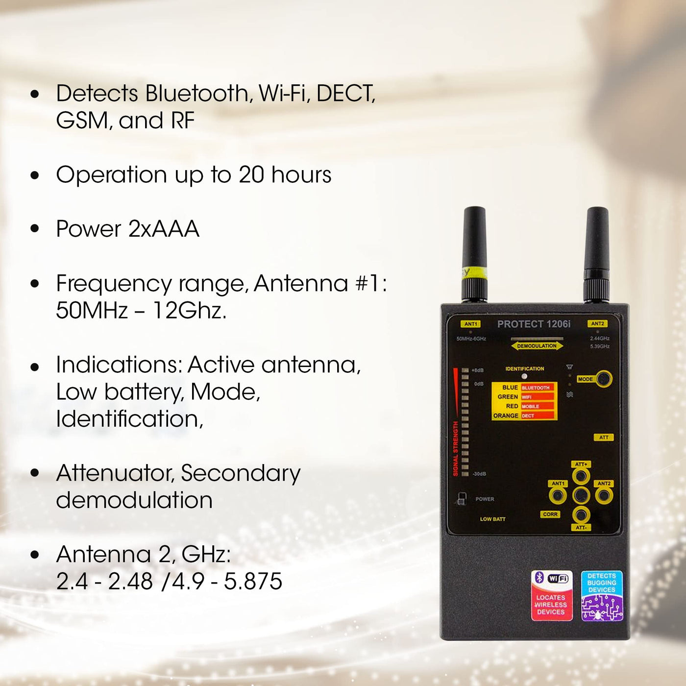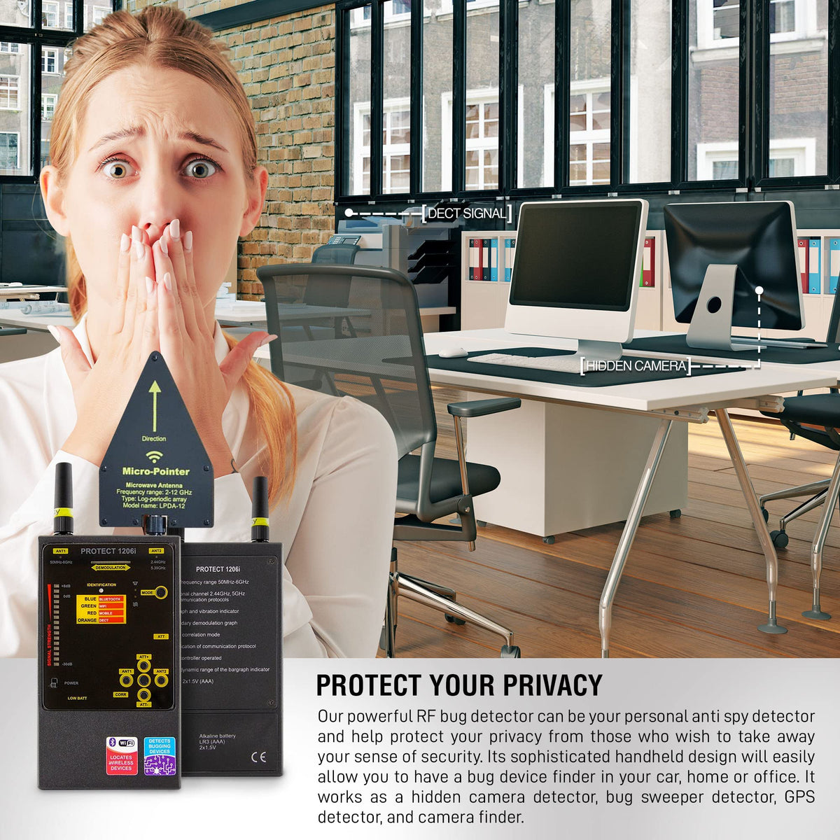 Protect 1206I Handheld Rf Detector & Camera Finder Hidden Devices Detector To Find A Digital Or Analog Signal Wireless Electronic Anti Spy Detector Dual Antennas With A Wide Frequency Range