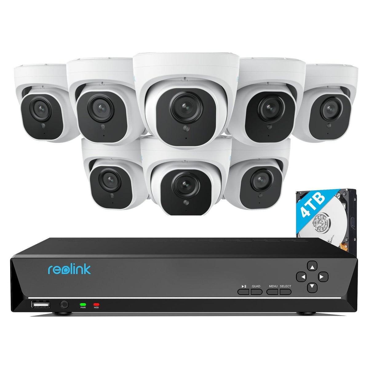 Reolink 4K Security Camera System Wired, 8Pcs H.265 Dome 4K Poe Cameras For Home Security Outdoors, Smart Person Vehicle Detection, 16Ch Nvr With 4Tb Hdd For 24 7 Recording, Rlk16 800D8