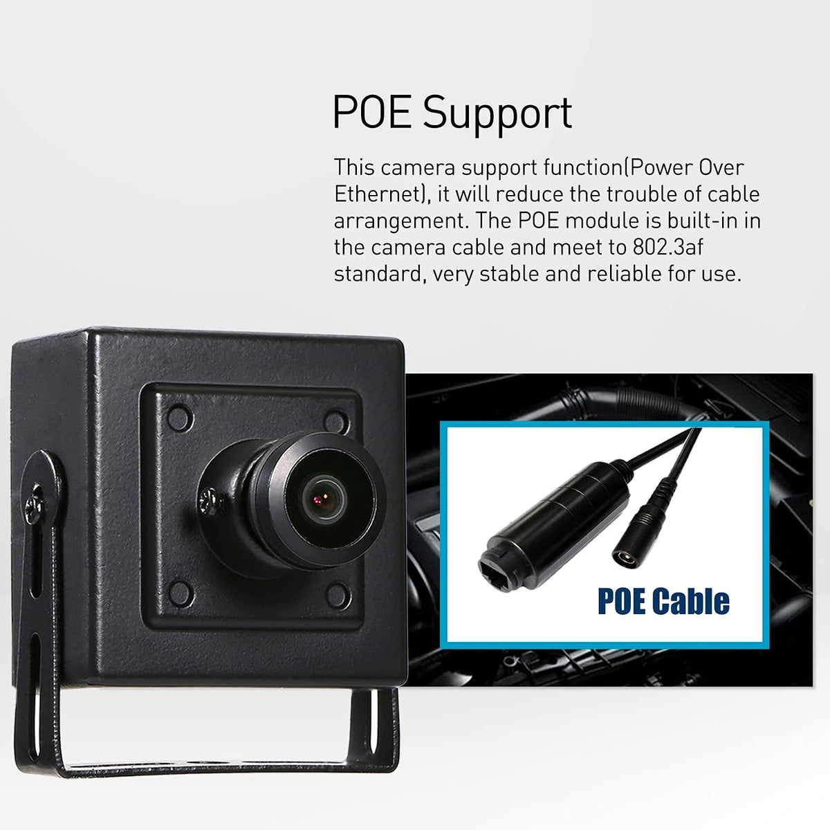 Note:1.This Product Power From Poe, Need To Connect With A 802.3Af Standard 48V Poe Switch.2.This Camera Default 3Mp & H.265, If Your Nvr Do Not Support 3Mp Or H.265, You Can Change Our Camera Into 1080P (2Mp) And H.264.3.Ip Camera Will Create More Heat And The Case Of This Camera Is Small, So After You Operate The Camera For A While, You Will Feel The Camera Is Hot. And Do Not Worry, It Is Normal And Safe, Hope You Can Understand.* High Resolution 3.0 Megapixel 1/3'' Cmos Sensor* 2304*1296P Resolution 20Fps* Support Poe, Reduce The Trouble Of Cable Arrangement.* Have Auxiliary Power Connector, Can Use Like A Non-Poe Ip Camera.* Support H.265 Encode, Compare With H.264, Transit Same Quality Image Only Need Half Of The Bandwidth; Record Same Quality Image Only Need Half Of The Storage;* Also Support H.264 Encode, So It Can Be Compatible With Both H.264 And H.265 Device.* Support Iphone, Android Smartphone* P2P Remote Viewing* Support Motion Detection, Email Alarm Function* Metal Material Shellcameramodel: I706-4-P-Fhwresolution: 2304 X 1296P 3.0 Mega Pixelssensor: Fh8852+Gc2053Min Illumination: 0.1Lux @(F1.2,Agc On)Frame Rate: 3Mp/20Fpslens: 1.44Mm Fisheye Lenso Nviif Port: 6688Lens Interface Type: M12Compression Format: H.265/H.264Storage: Nvr Or Computerip Address: Dynamic (Default)/Staticsmart Alarm: Motion Detection, Email Alarmsupport Protocol: O Nviif, Http, Tcp/Ip, Icmp, Rtsp, Rtp, Rtcp, Smtp, Dhcp, Dns, Pppoe, Ntpethernet: 10M/100M Mbps Ethernet (Rj-45)Generaloperating Temperature: -25C~60Coperating Humidity: 10%~90%Power Supply: Poepoe Standard: 802.3Afdimension(Cm): 5.3 X 4.5 X 4Cmweight: 0.2Kgpackage Contents: 1 X Camera1 X User Manual (English)1 X Screws Set