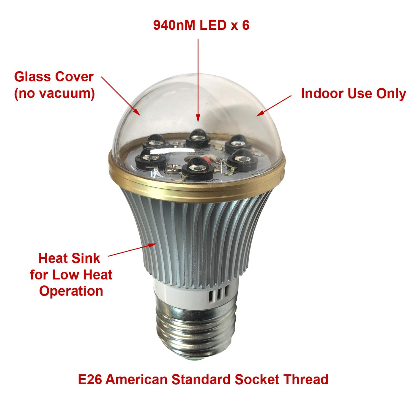 Light Bulb Shaped Compact 940Nm Ir Led With Low Heat. As Long As Your Camera Is Equipped With 940Nm Filter Lens, This Ir Lamp Will Let The Camera See In Total Dark With Zero Glow From The Led (Cameras With 850Nm Filter Will Not Work). The Lamp Will Provide 160Deg Wide Angle Beam. Quality Led Will Last Years And Years.