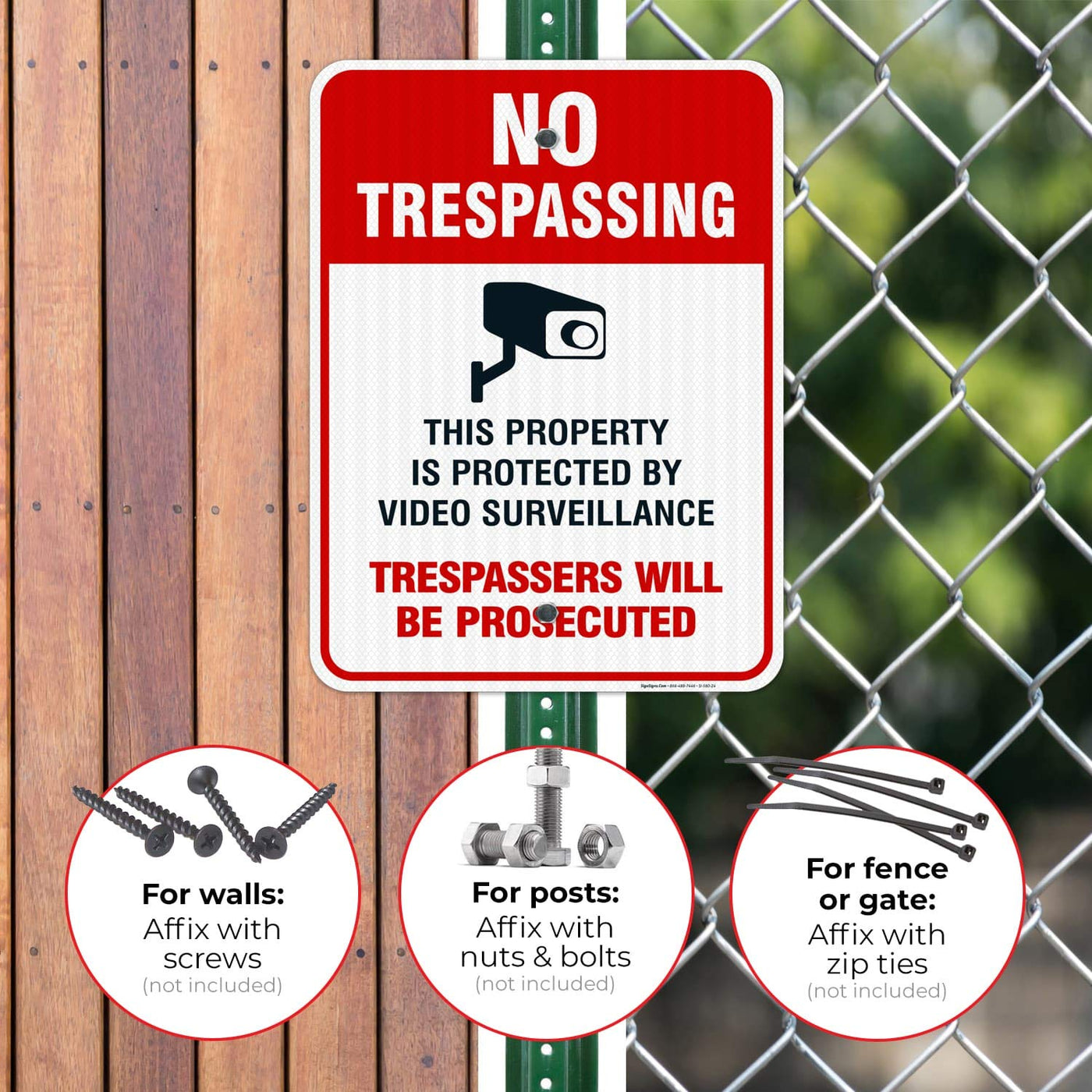 Sigo Signs Video Surveillance No Trespassing Sign, Cctv Security Camera, 18X24 Inches, 3M Egp Reflective .080 Aluminum, Fade Res