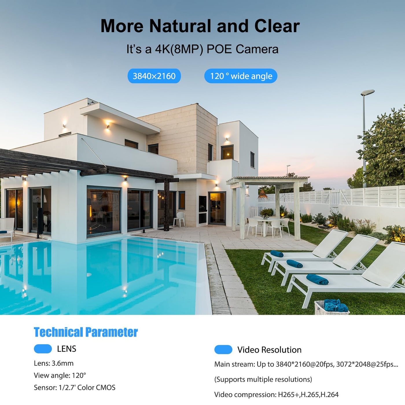 Sv3C 4K Poe Security Camera Outdoor, 2 Pack 8Mp Poe Ip Camera With 120Wide Angle, Smart Motion Detection, Ir/Color Night Vision,