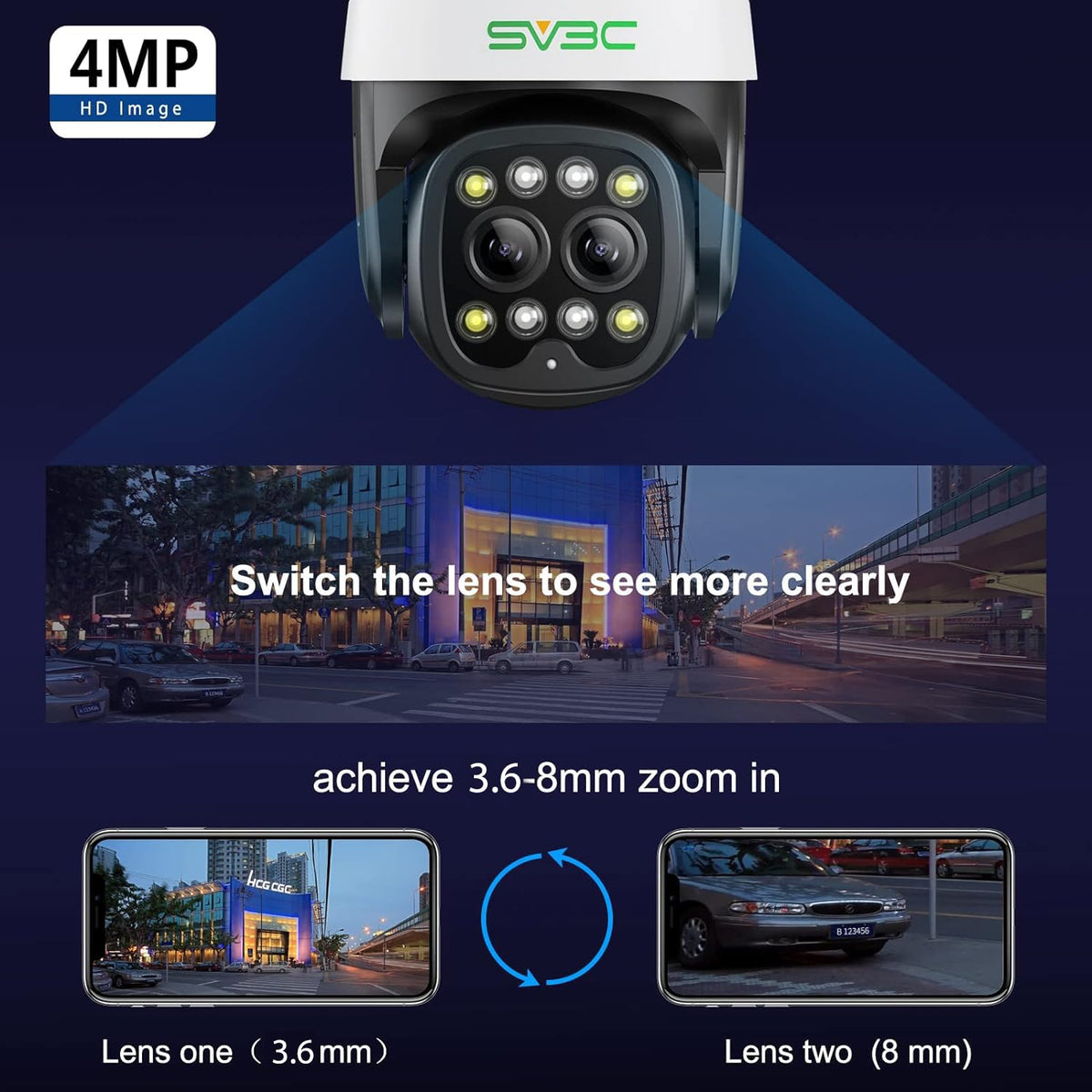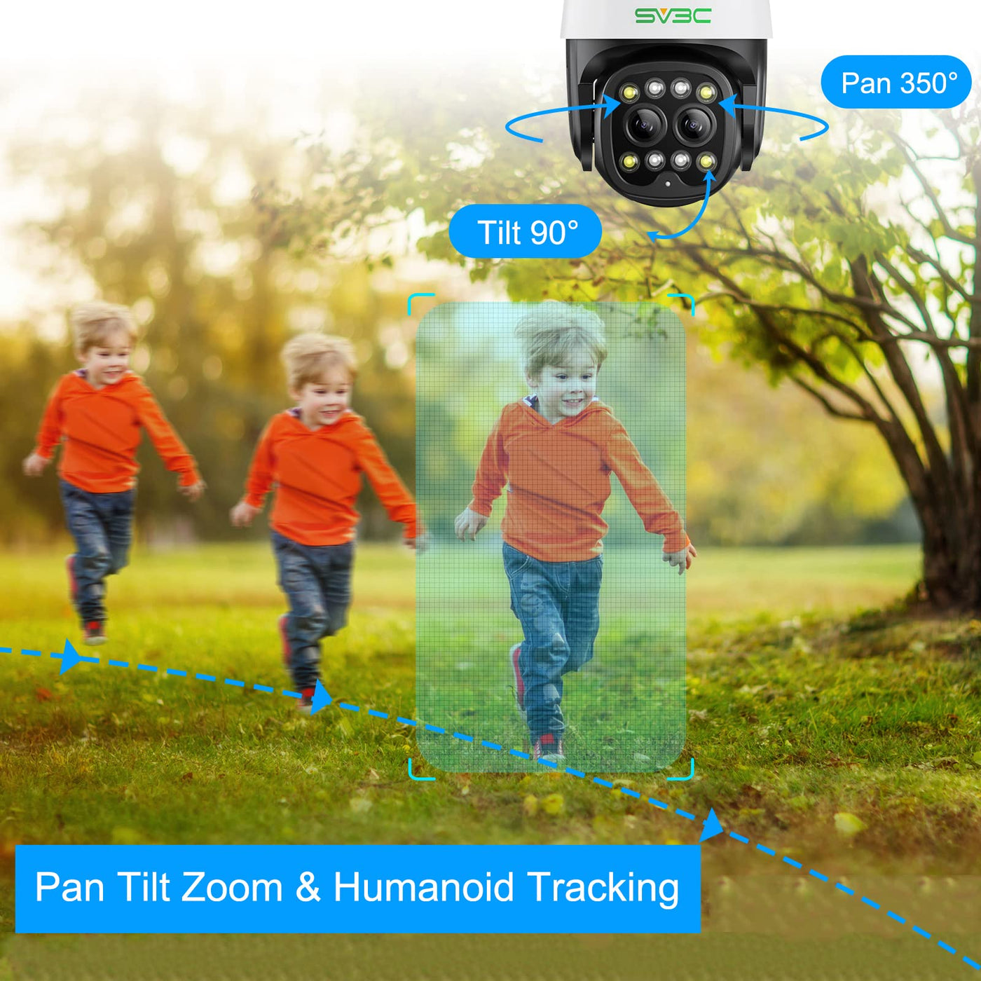 Sv3C Ptz Security Camera Outdoor Wifi 4Mp Dual Lens Wireless Ip Camera With Auto Tracking Floodlight Color Night Vision 2-Way Audio Motion Detection, Rtsp, Ftp, Sd Card Record, Blueiris, Onvif Conformant, Pc, App, Remote Access.