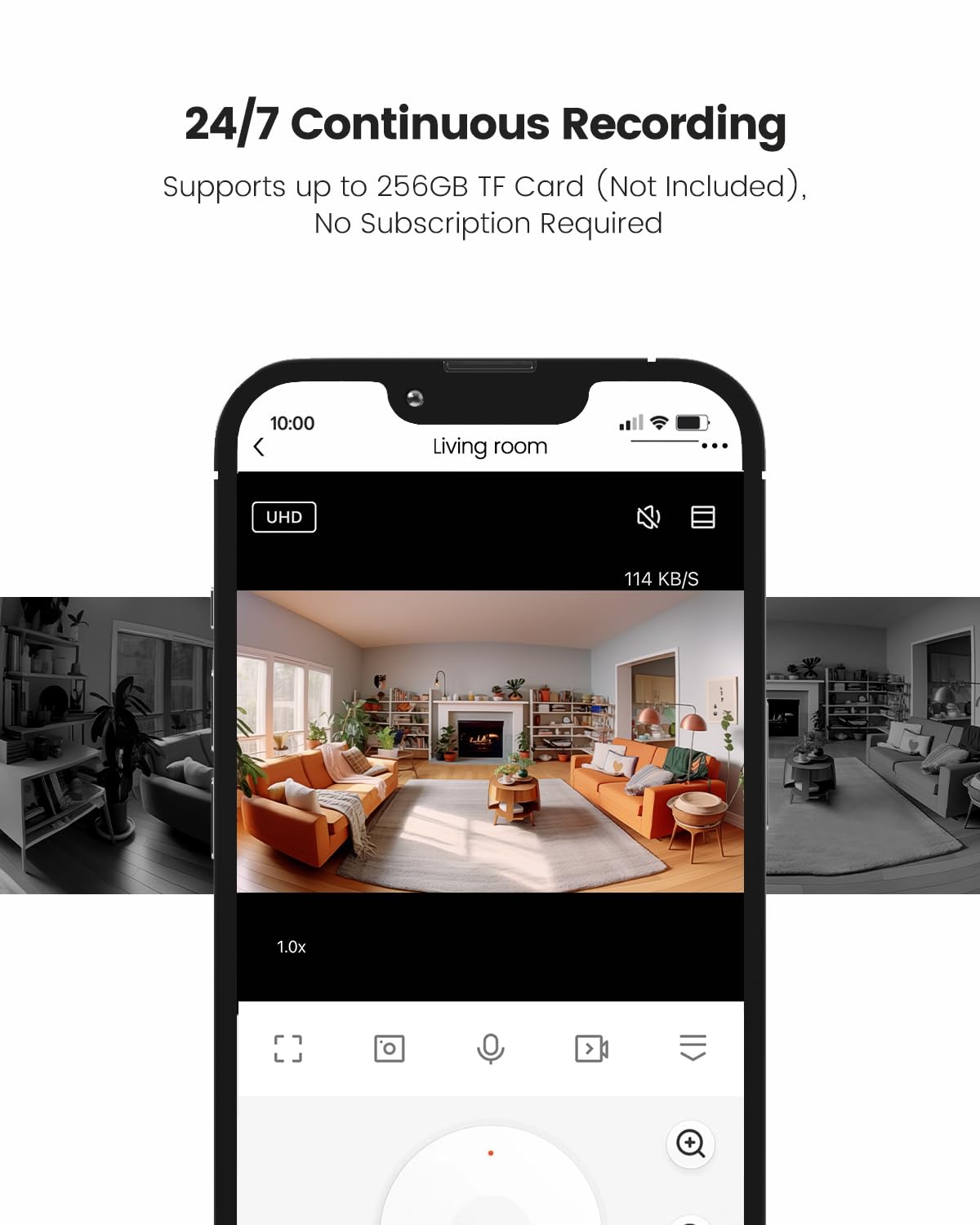 Delve Into Ultimate Security With The Treatlife 3K 5Mp Ultra Hd Smart Security Camera. Crystal-Clear Visuals, High-Resolution, And Hdr Technology Provide An Immersive Experience. Effortless Control Via Voice Commands, Intelligent 355 Pan, 65 Tilt, And Ai Tracking Ensure Comprehensive Surveillance. Instant Alerts From Precise Motion Detection And Enhanced Night Vision Offer Real-Time Awareness. Enjoy Two-Way Audio, Smart Sound Detection, And A Built-In Siren For Heightened Security. Efficient Video Encoding Optimizes Storage, Robust Data Security Safeguards Your Footage, And Customizable Privacy Settings Come With No Monthly Fees. Access 24/7 Playback, Reliable Dual-Band Wifi Supporting 2.4G And 5G Networks, And Secure Video Communication With Webrtc Support. Elevate Your Security With Treatlife - Where Advanced Technology Meets Simplicity For Peace Of Mind.