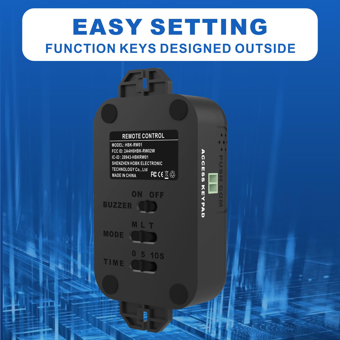 Receiver: Voltage: 12Vdc Wifi Standard: Wi-Fi 2.4Ghz Frequency: 433Mhz Dc Encoding Type: Learning Code Firing Range: 160 Feet (Open) In Theory, 15%-30% In Reality Work Mode: Momentary/Toggle Built-In Dc Power Connector,Wiring Easy