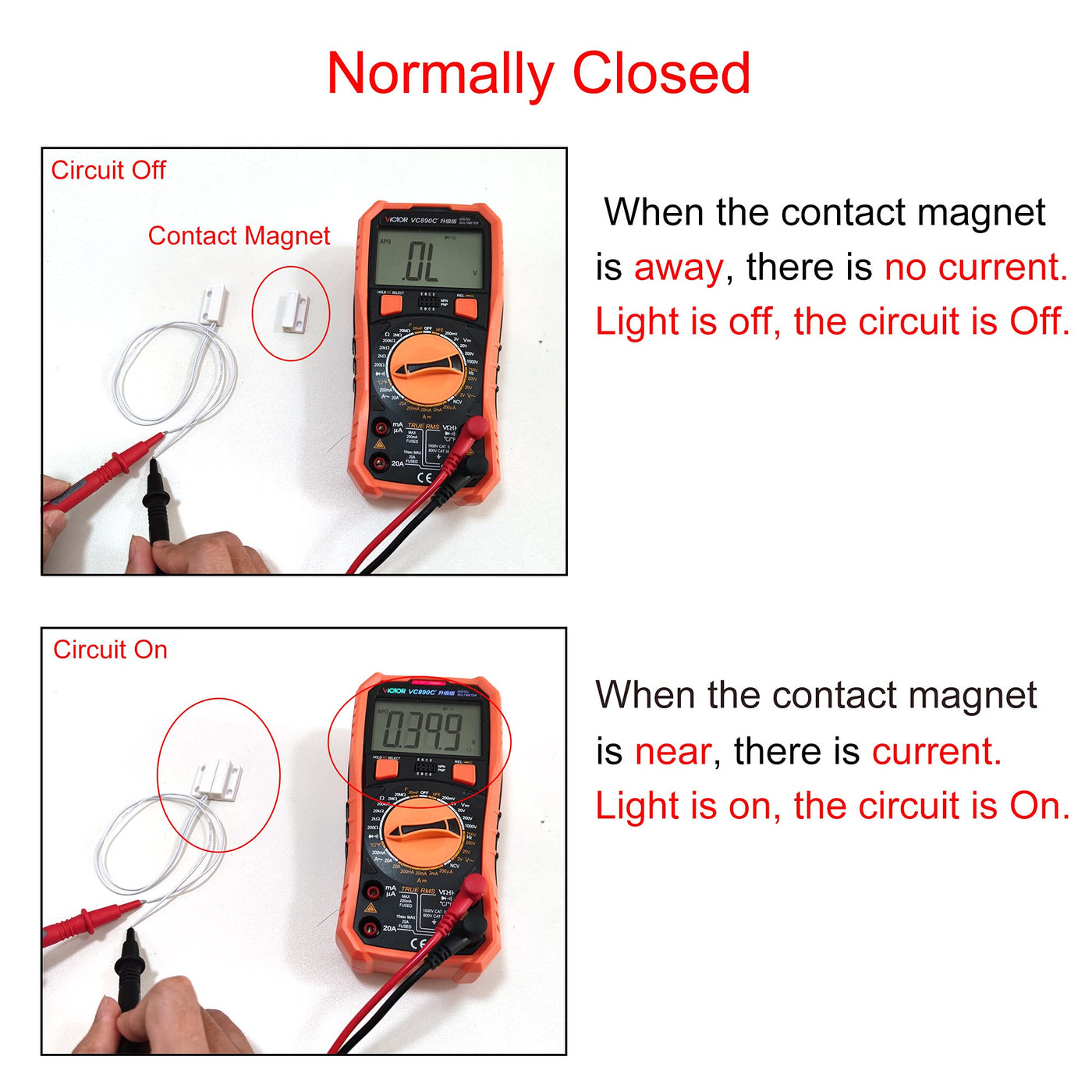 Differences Of Nc, No, Nc/Nonormally Closed(Nc): When The Switch Is Close To The Magnet, The Circuit Is Conductive(Light On); When The Switch Is Separated From The Magnet, The Circuit Is Not Conductive(Light Off).Normally Opened(No): When The Switch Is Separated From The Magnet, The Circuit Is Conductive(Light On); When The Switch Is Close To The Magnet, The Circuit Is Not Conductive(Light Off).Nc/No Combined: The Switch Has 3 Contact Types: Nc/No/Com, You Can Choose To Connect Two Of The Contacts(Nc-Com Or No-Com).Please Notea Magnetic Door Contact Can Only Provide A Switching Signal To The Device. It Cannot Directly Load The Power Supply And Cannot Be Directly Connected To The Lamp.Specifications:Model: Mc-38Contact Type: Ncmaximum Sensor Sensitivity: 10-20Mmload Current: 100Mawithstand Voltage: Dc 0-36Vworking Voltage: Dc 0-24Vmounting Hole Distance: 18Mm / 0.71Inchsize(Approx.):&Nbsp;27 X 14 X 8Mm / 1.06 X 0.55 X 0.31Inch (L*W*H)Each Wire Length(Approx.): 30Cm / 11.8Inchwire Type: 1007#/24#320Mmulhousing Material: Abspackage Content:&Nbsp;5Pcs X Magnetic Door Switch20Pcs X Mounting Screws